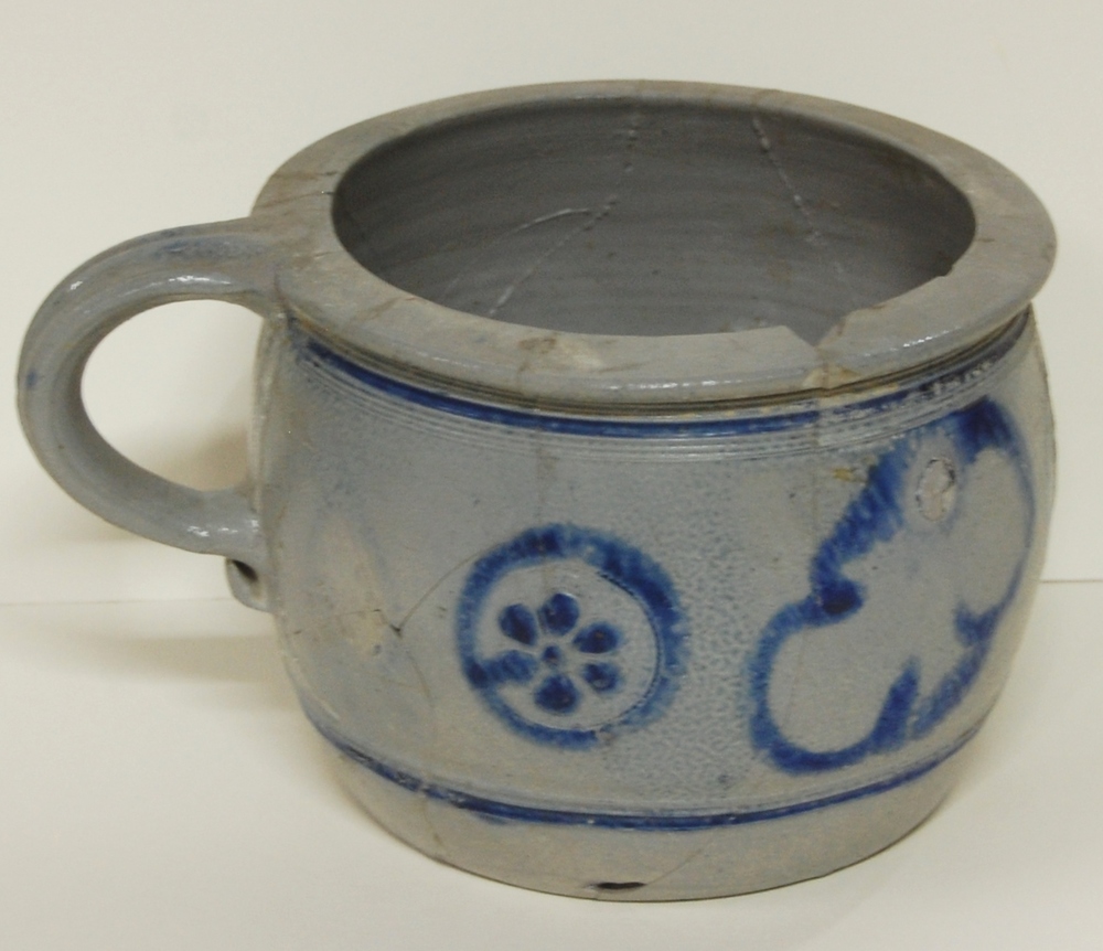 Keulse pot. Laag cylindrisch model met oor en omgevo...