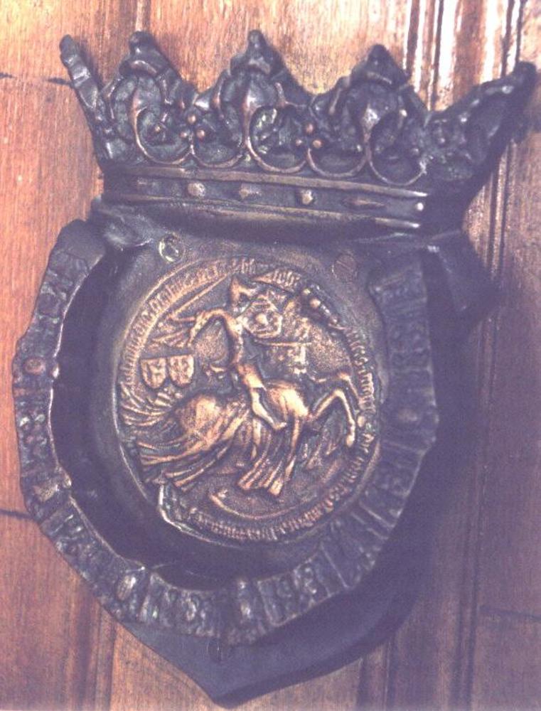deurklopper met gekroond wapenschild van brons in de...
