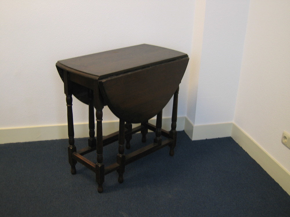 Bruine houten hangoortafel staande op 8 poten die me...