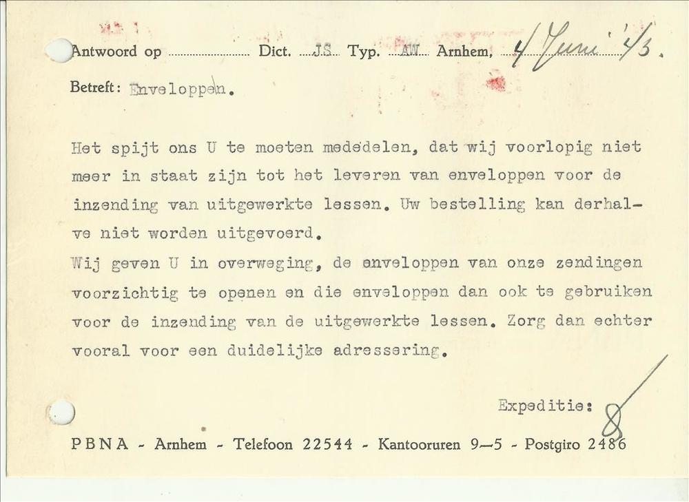 PBNA het Nederlandsch Technicum - briefkaart aan dhr...