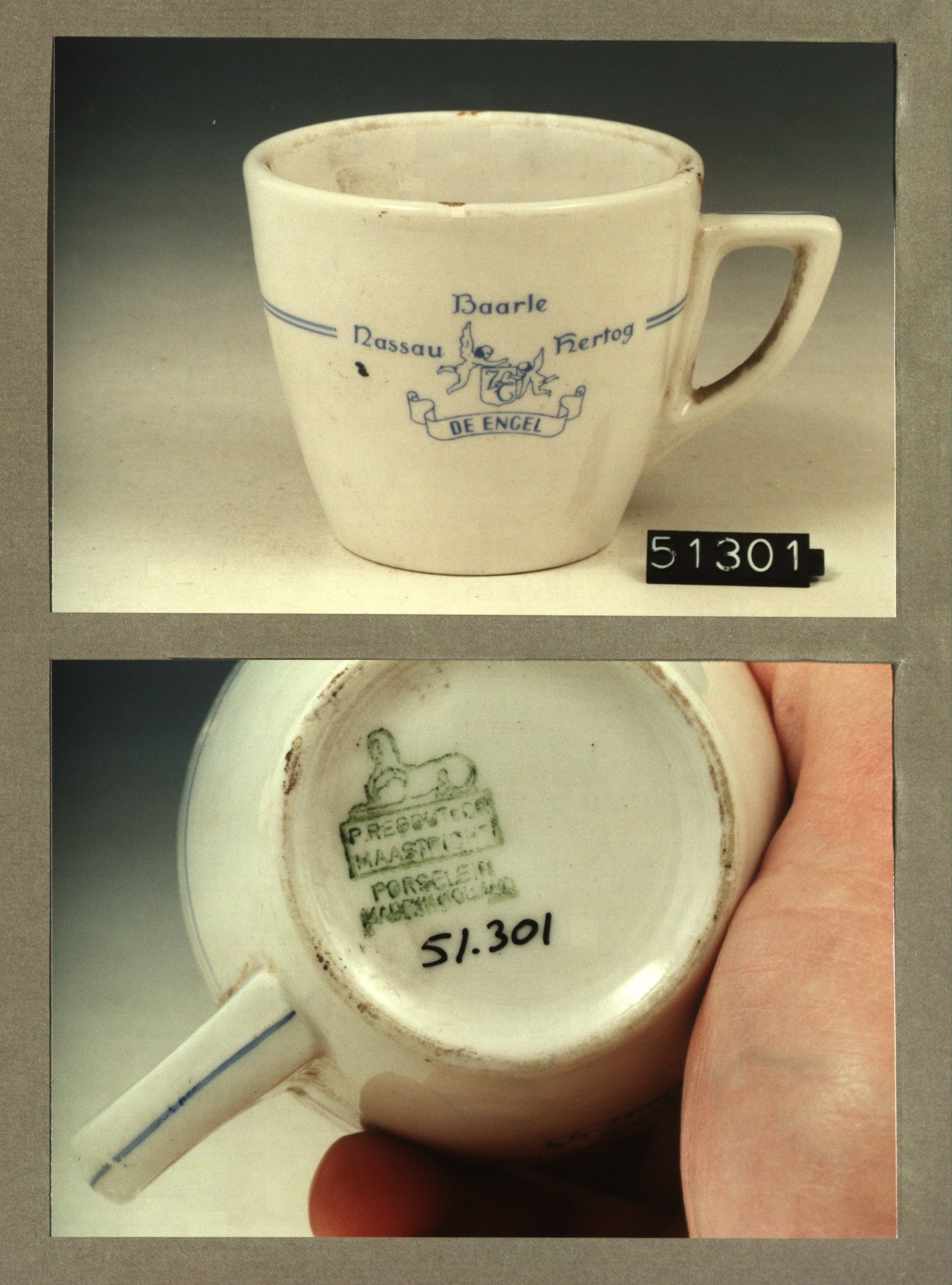 Kop met opschrift, model P2 met decor De engel Baarl...