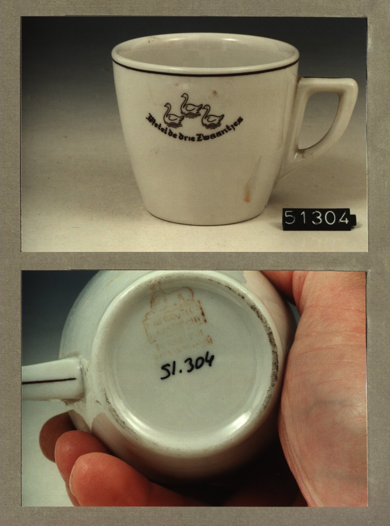 Kop met opschrift, model P2 met decor De drie zwaant...