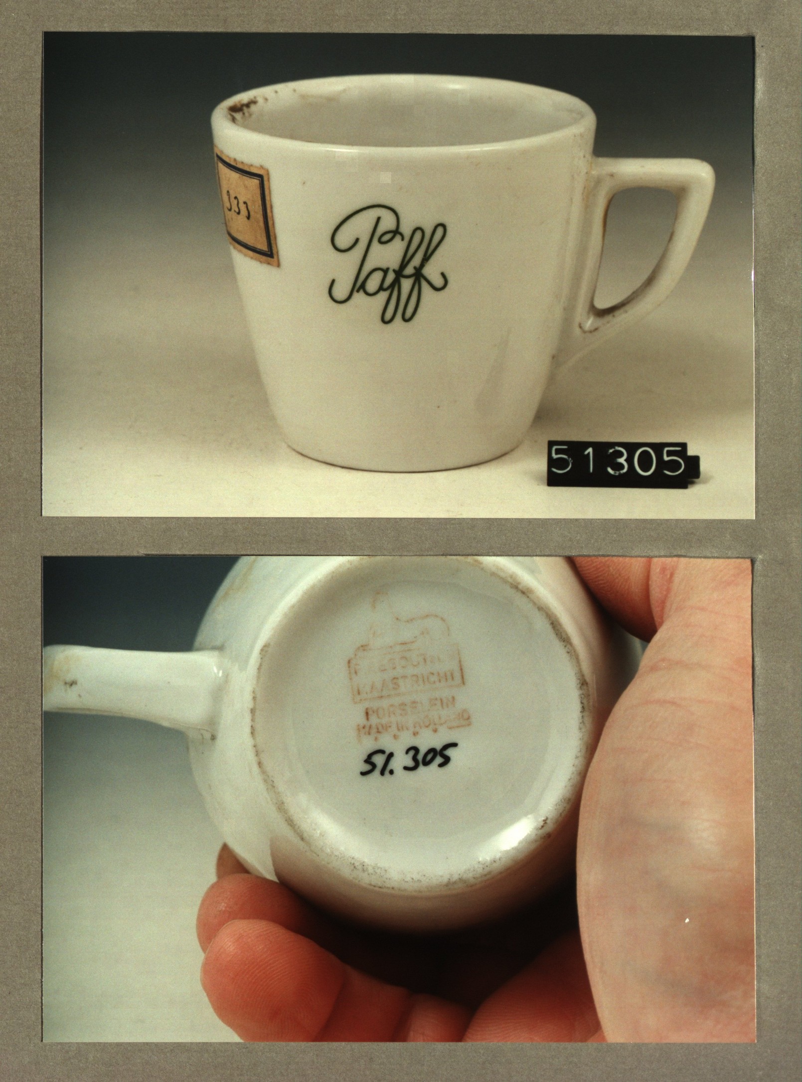 Kop met opschrift, model P2 met decor Paff.