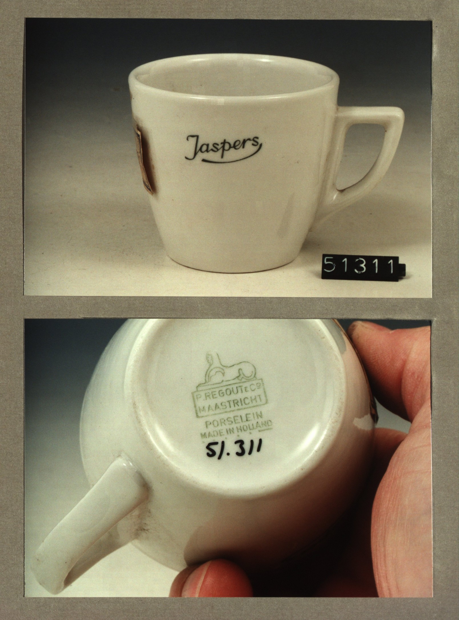 Kop met opschrift, model P2 met decor Jaspers