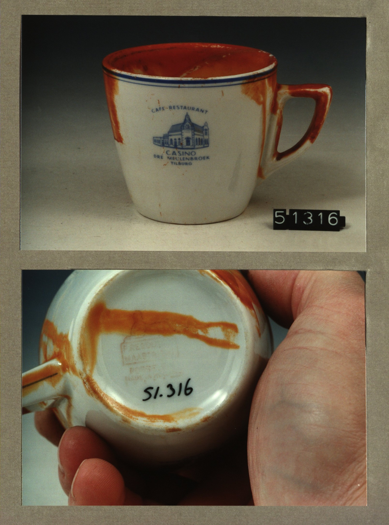 Kop met opschrift, model P2 met decor Cafe restauran...