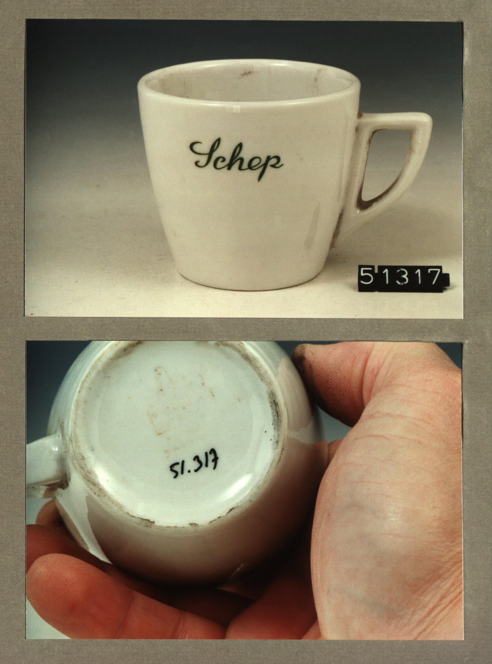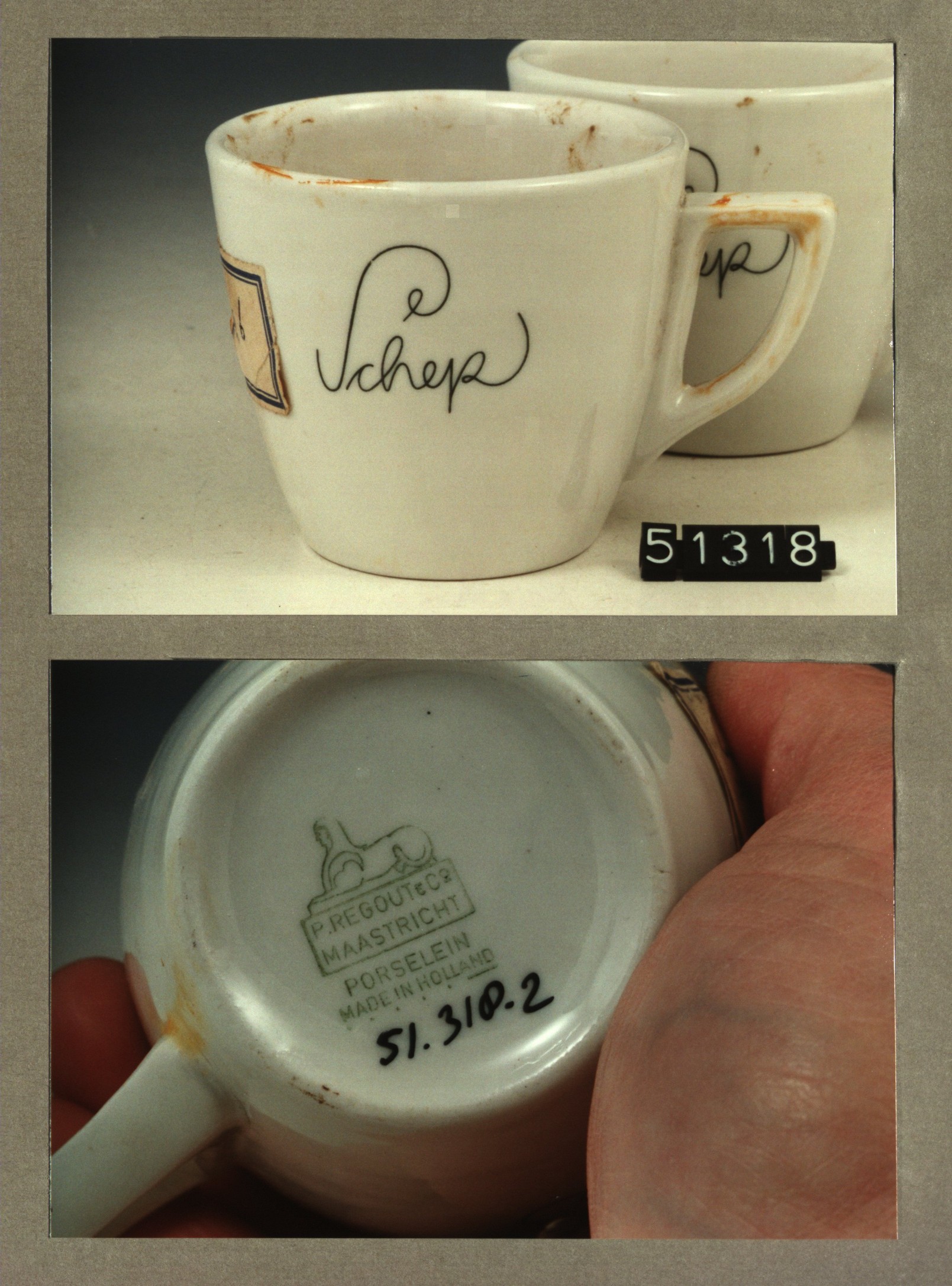 Kop met opschrift, model P2 met decor Schep restaura...
