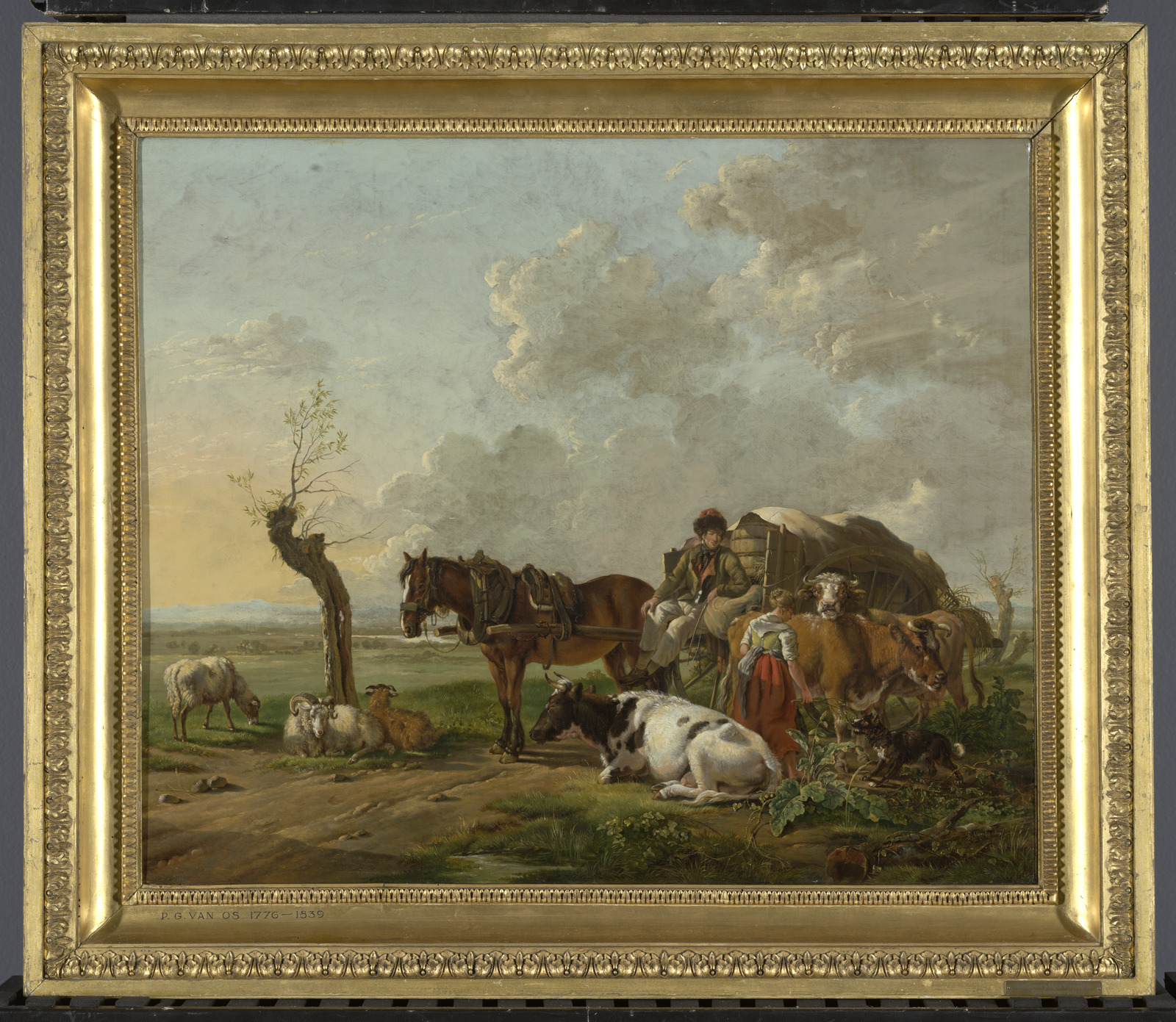 Landschap met een boerenmeisje en een voerman in ges...