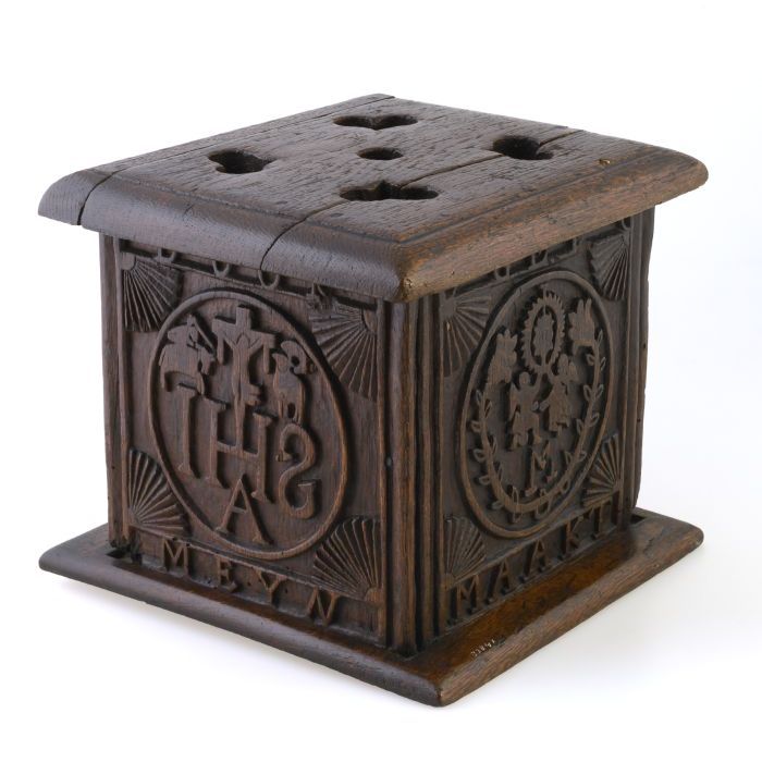 Eikenhouten stoof, rijkelijk versierd met snijwerk