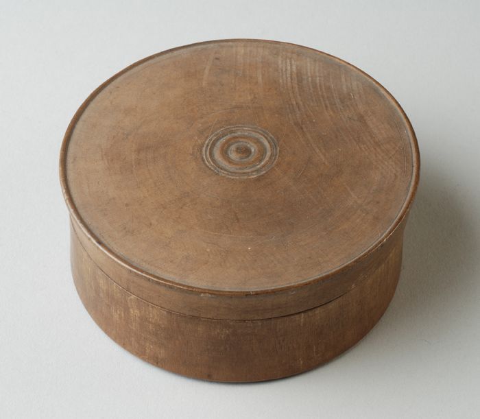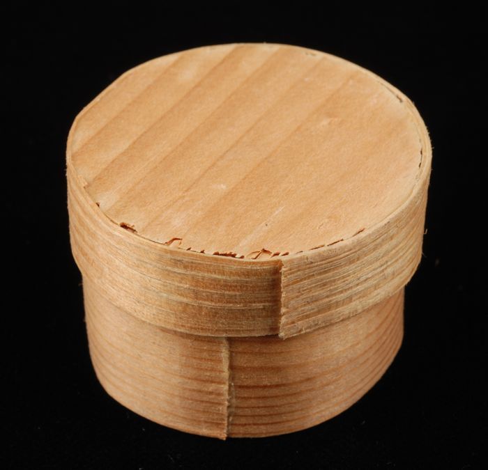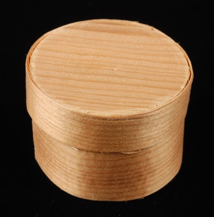 Cilindrische, spanen pillendoos met deksel, gebruikt...