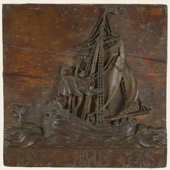 Houten gevelbord met "DE BUYS"