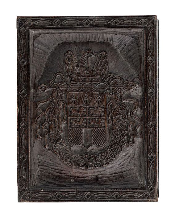 Houten cliché van het stadswapen van Rotterdam uit d...