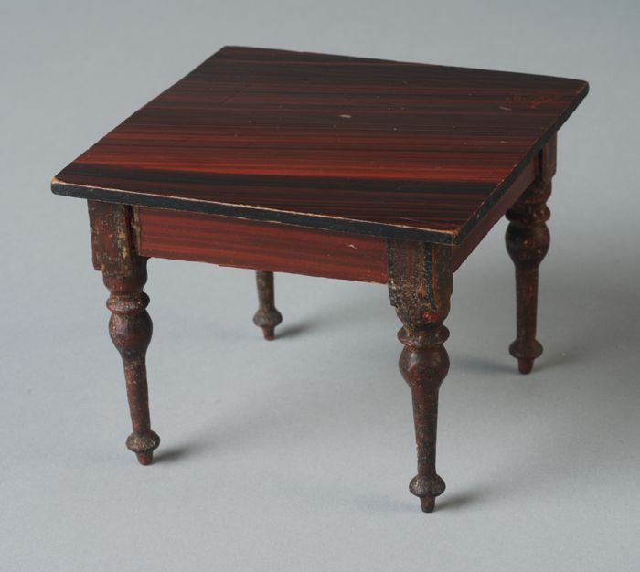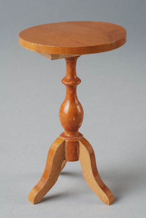 Houten miniatuur tafel met gedraaide poten en een vi...