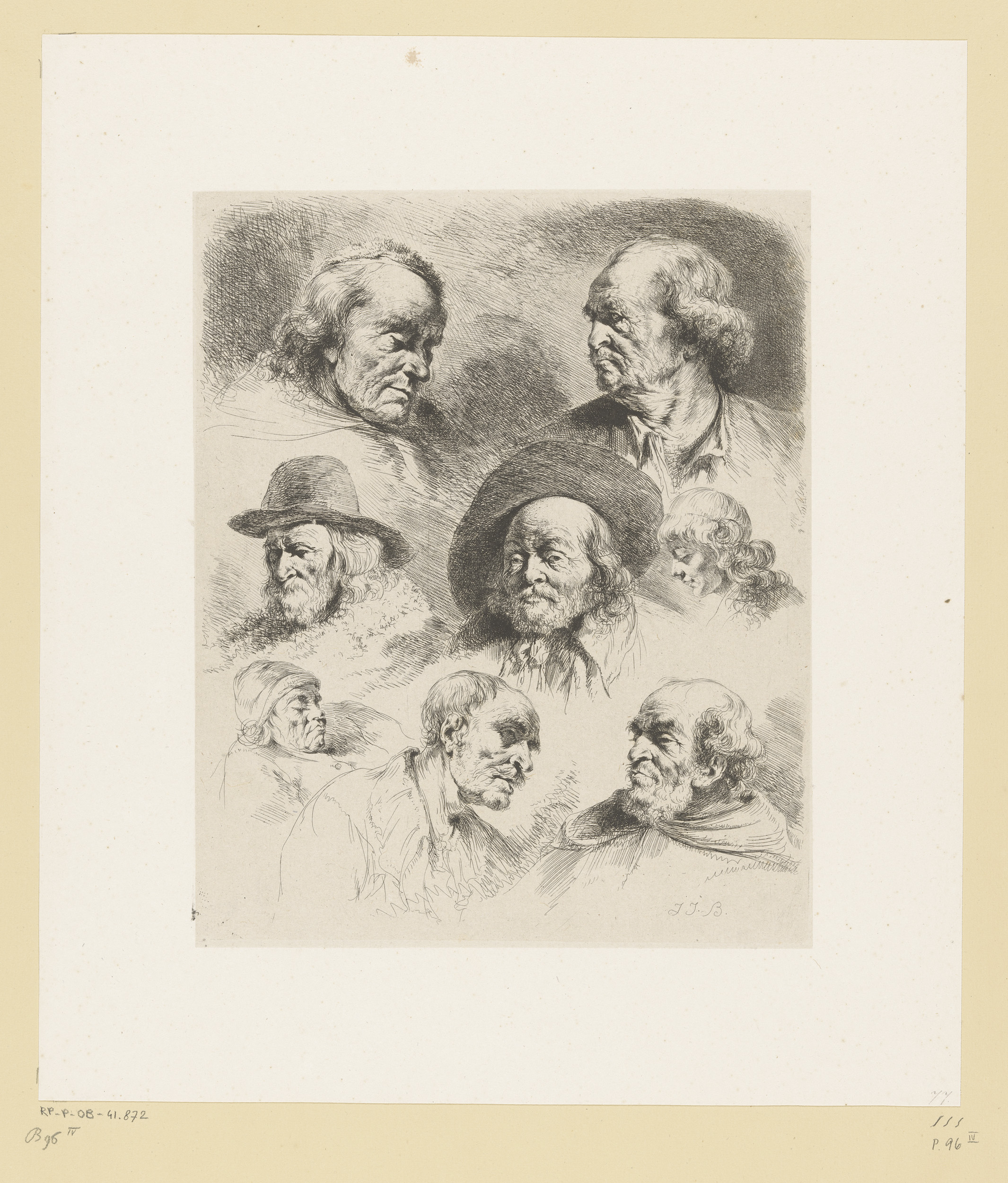 Compositie met zeven hoofden van mannen en een van e...