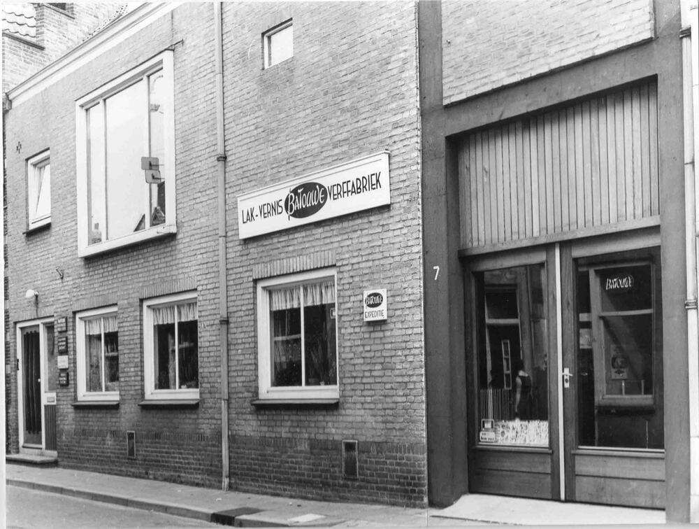 Foto, voorstellende de verffabriek Batouwe, Achterst...