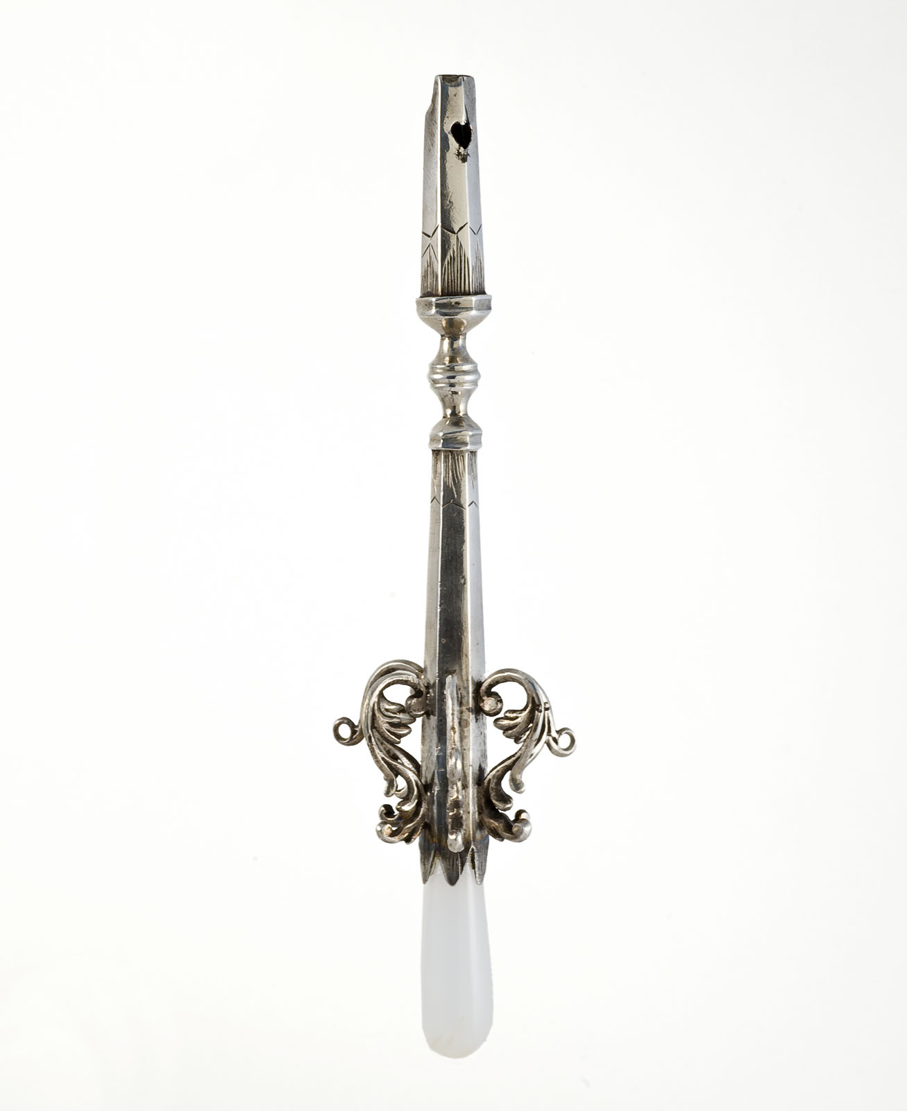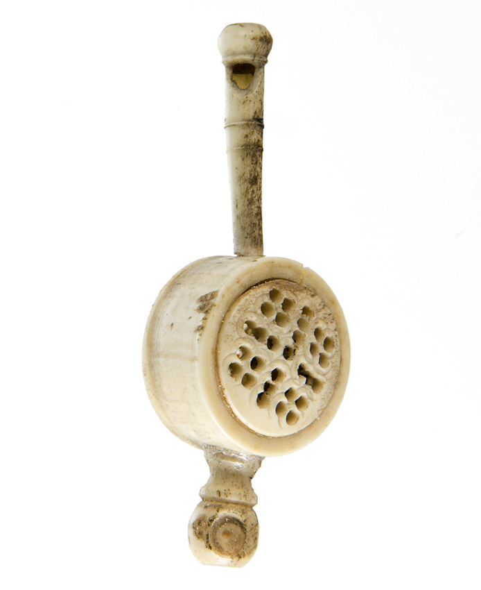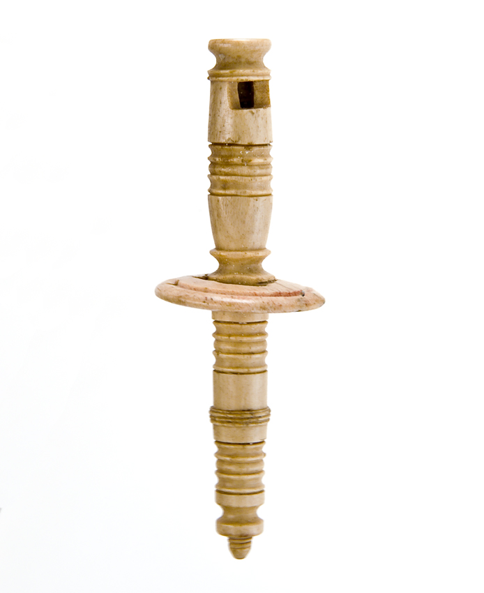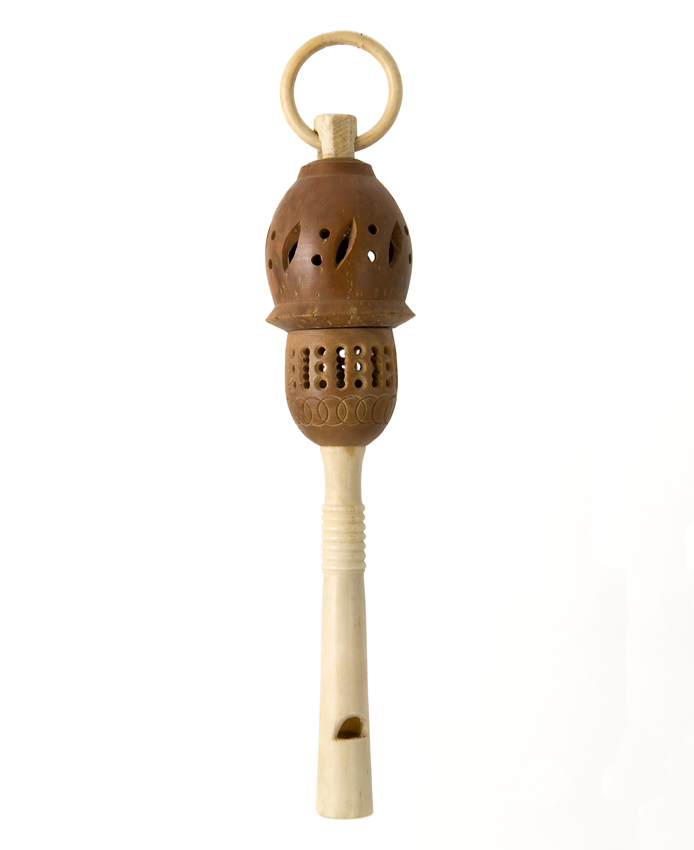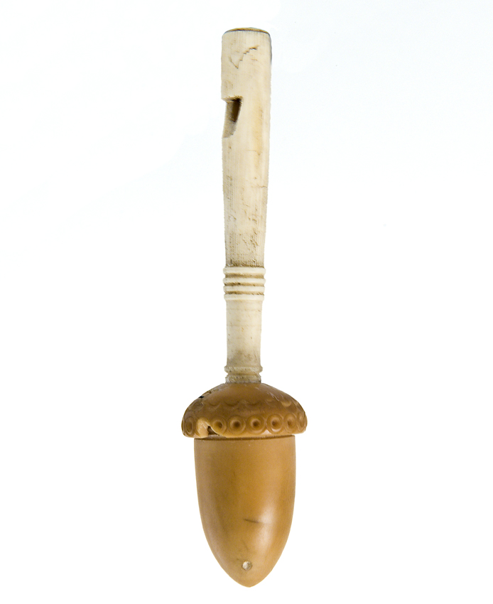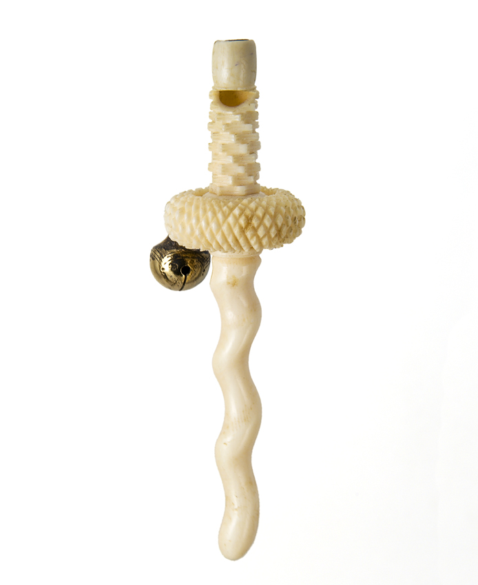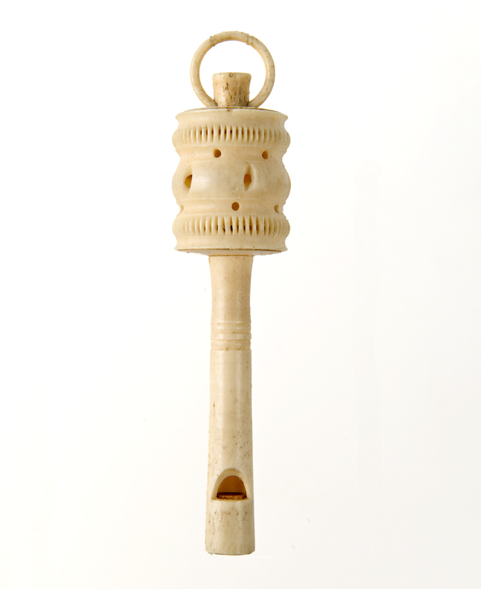 Rammelaar van gesneden walvisbeen met fluitje