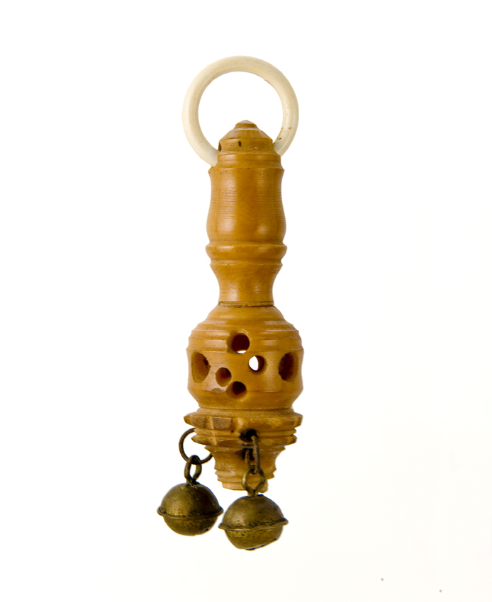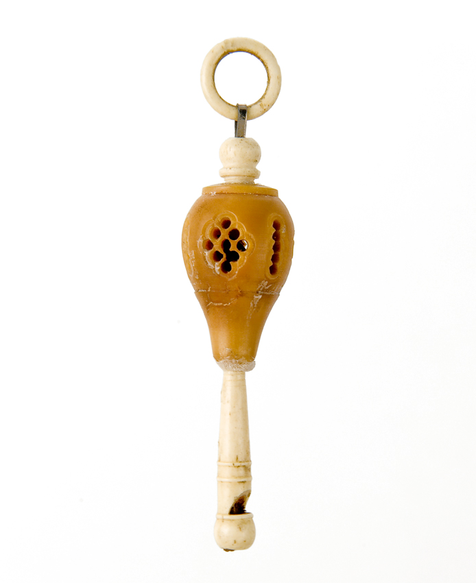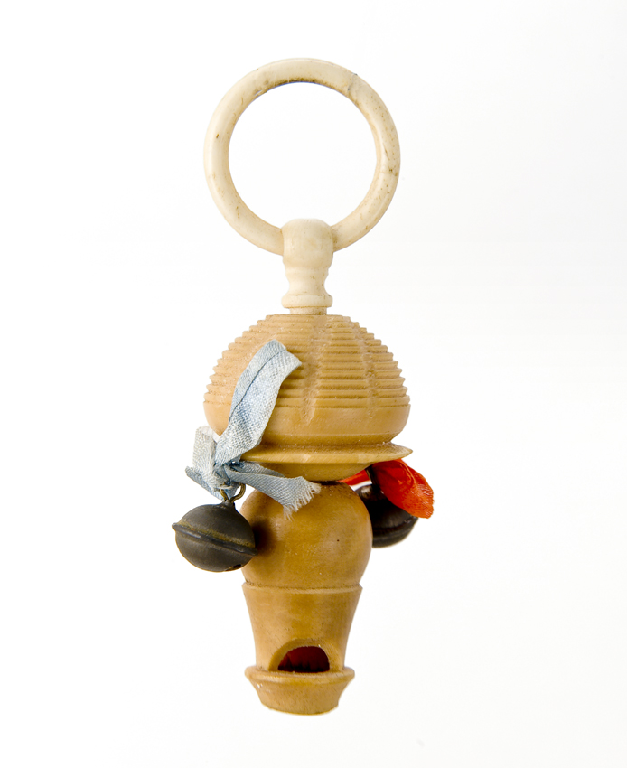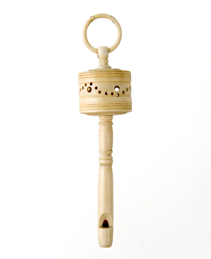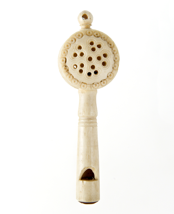 Opengewerkte ivoren rammelaar met fluitje