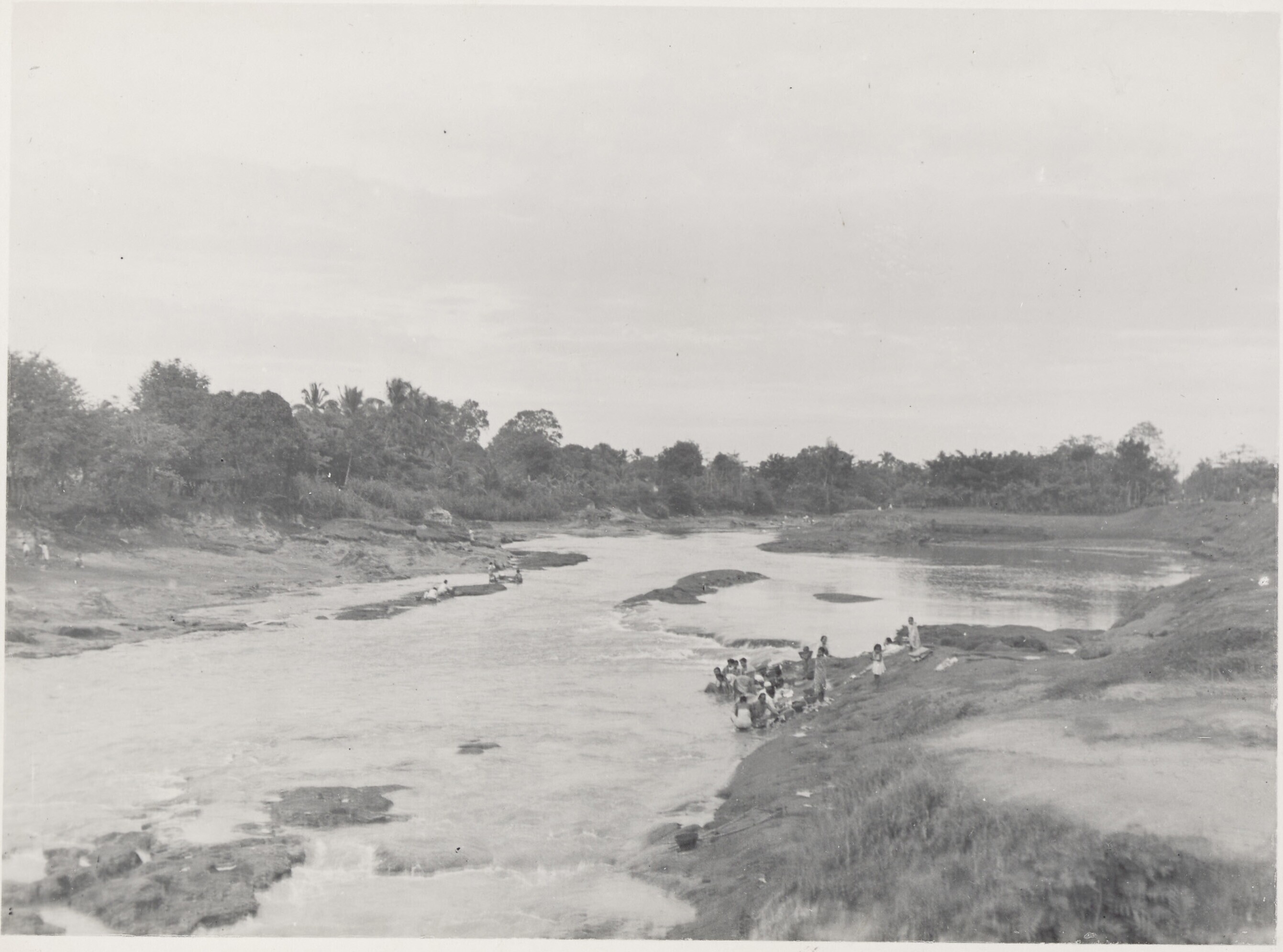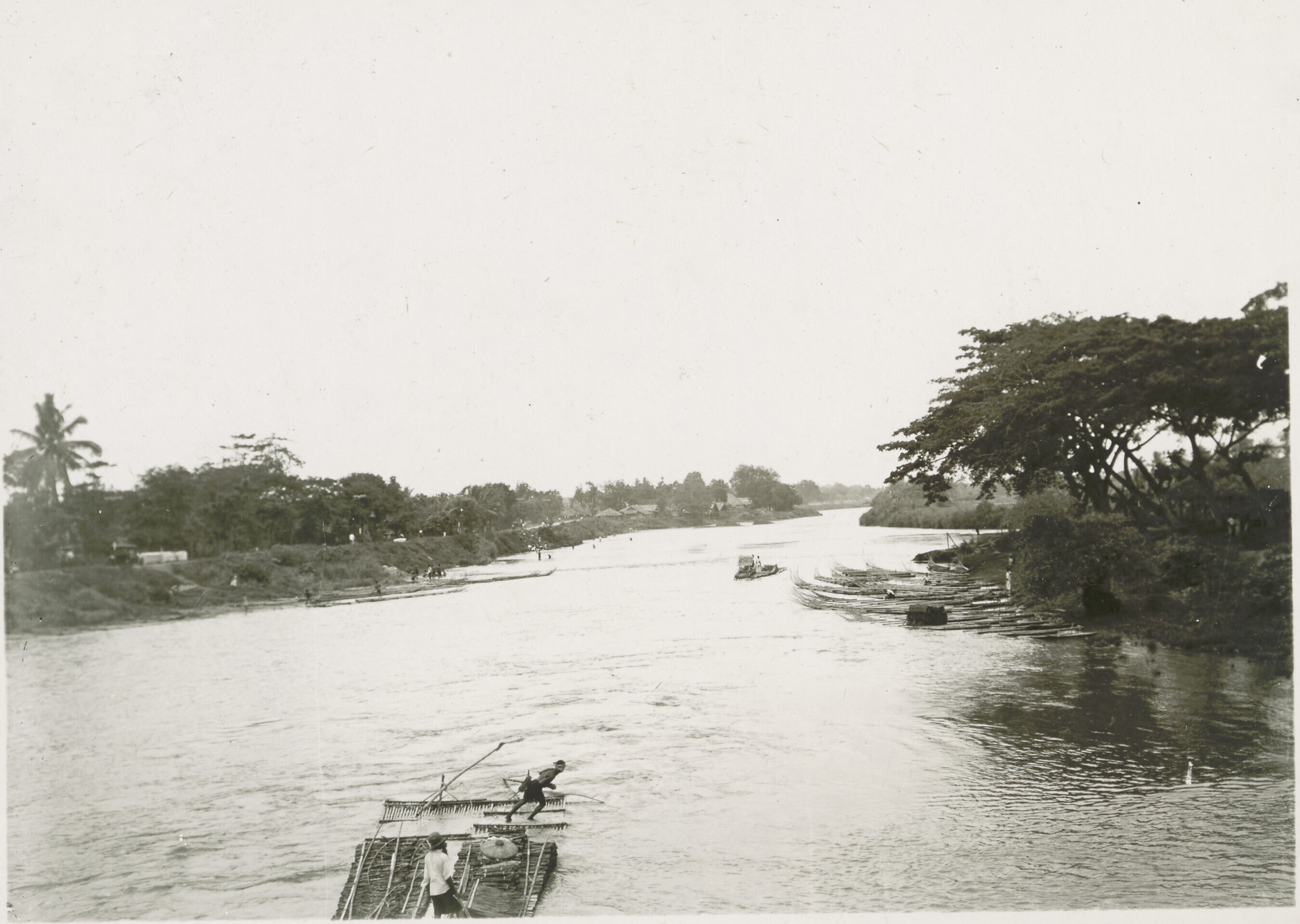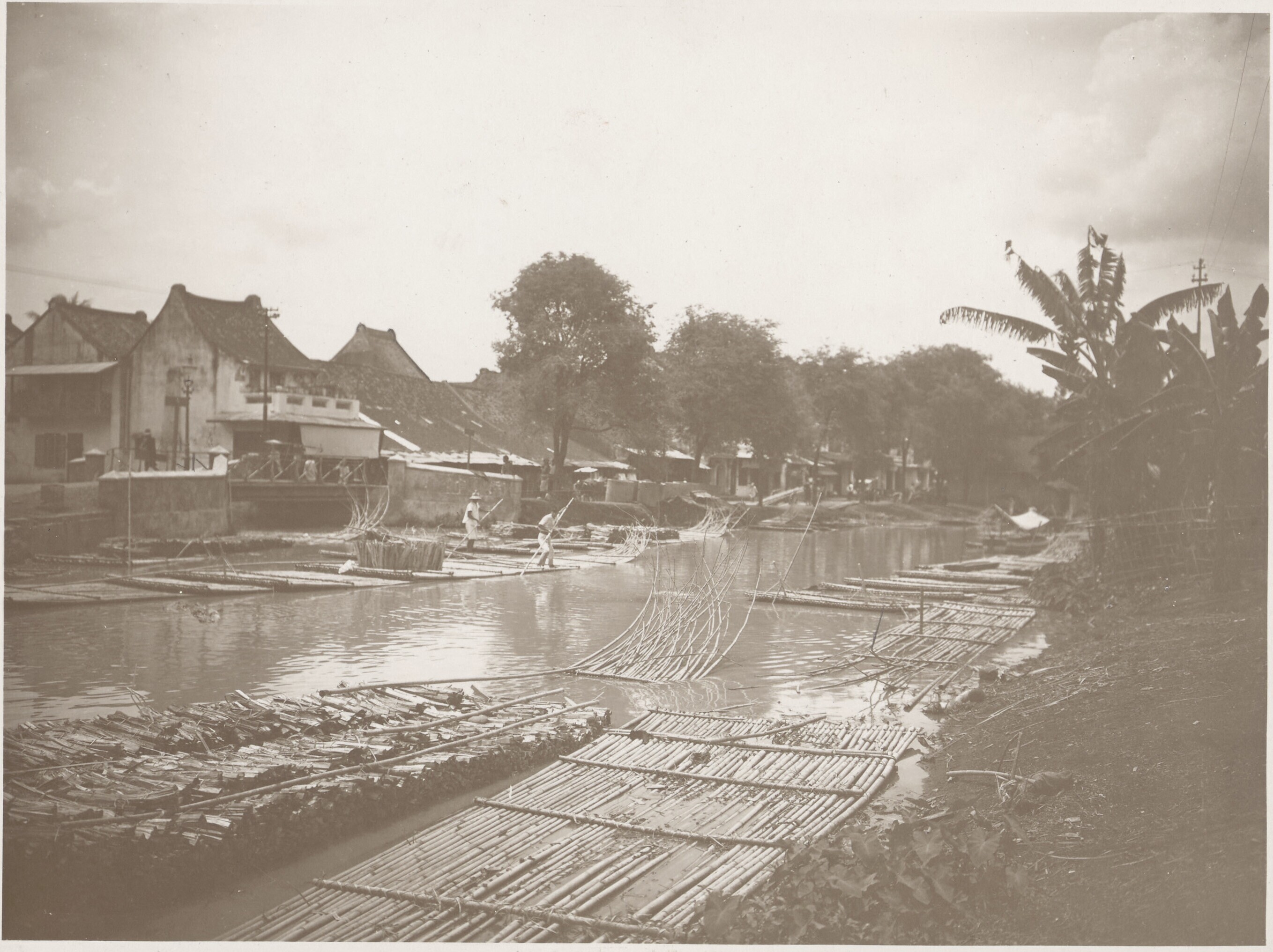 Bamboo rafts from Tangerang in a kali at Batavia