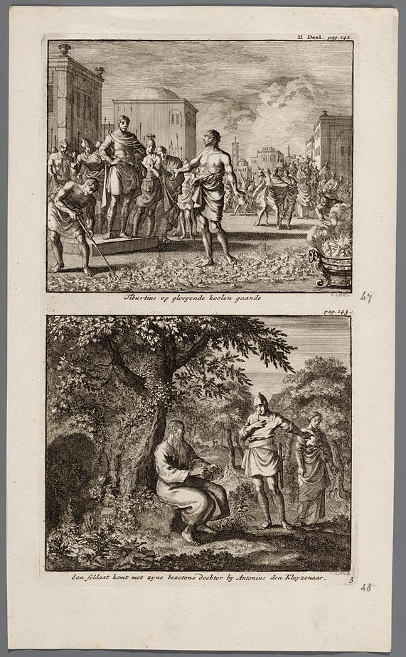 Tiburtius op gloeyende koolen gaande, Een soldaat ko...