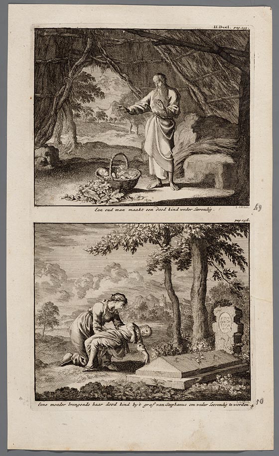 Een oud man maakt een dood kind weder leevendig, Een...