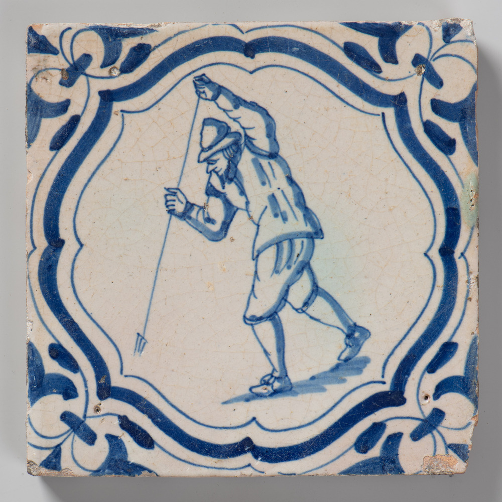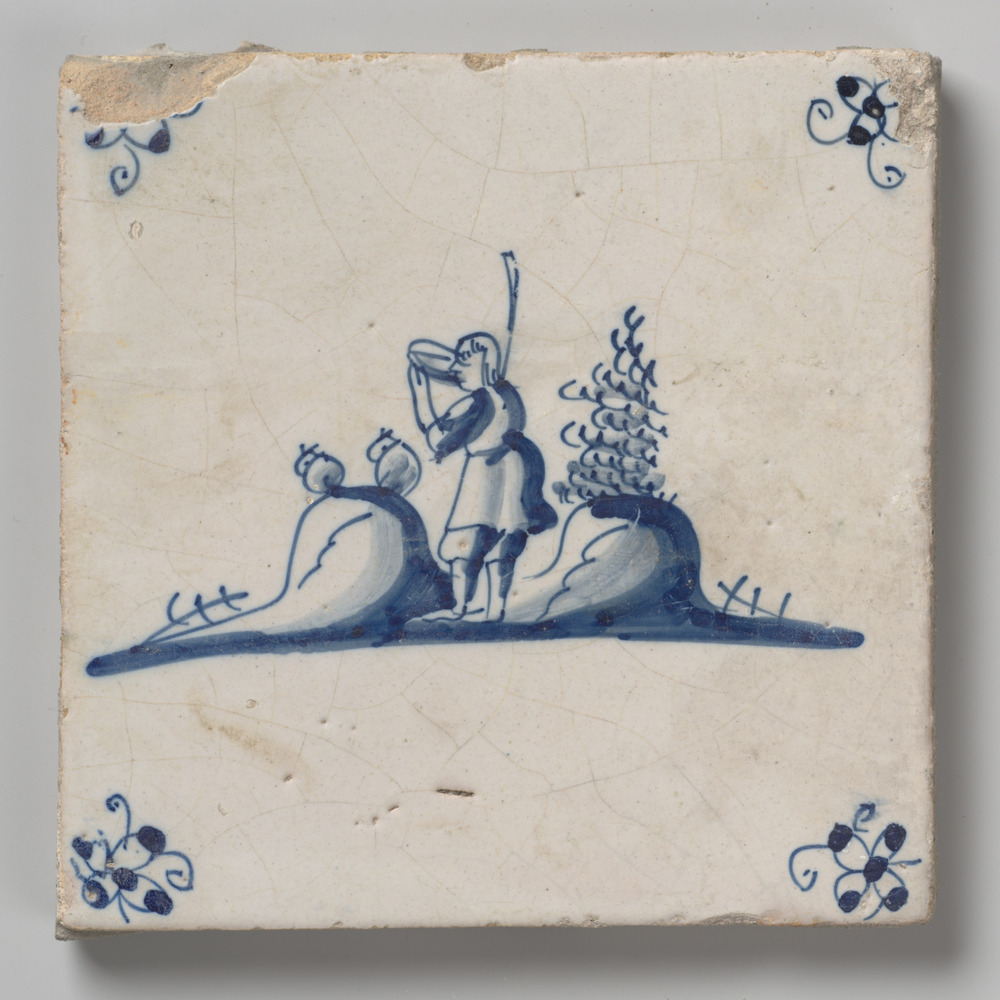 tegel van aardewerk met tinglazuur, voorstellende: p...