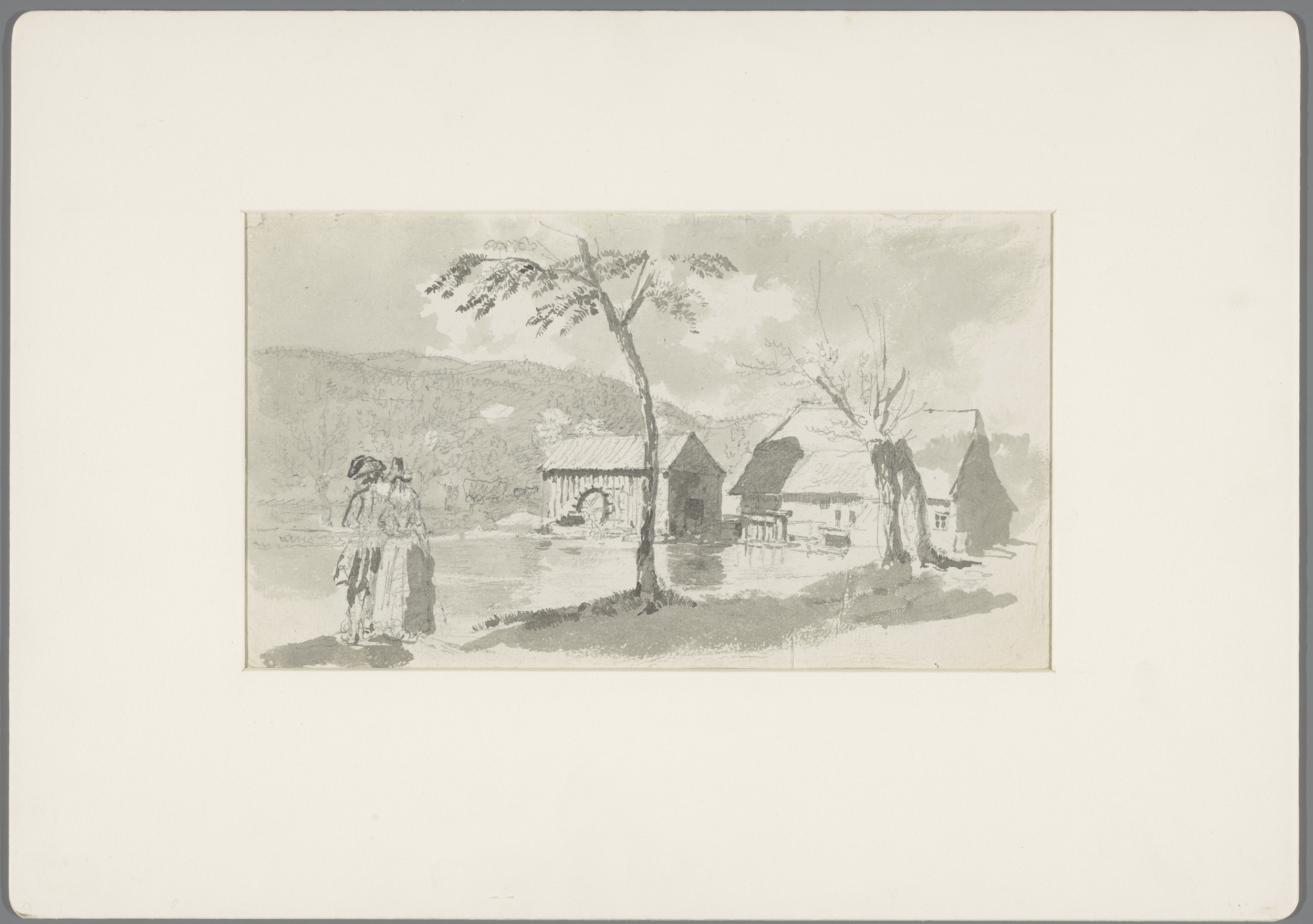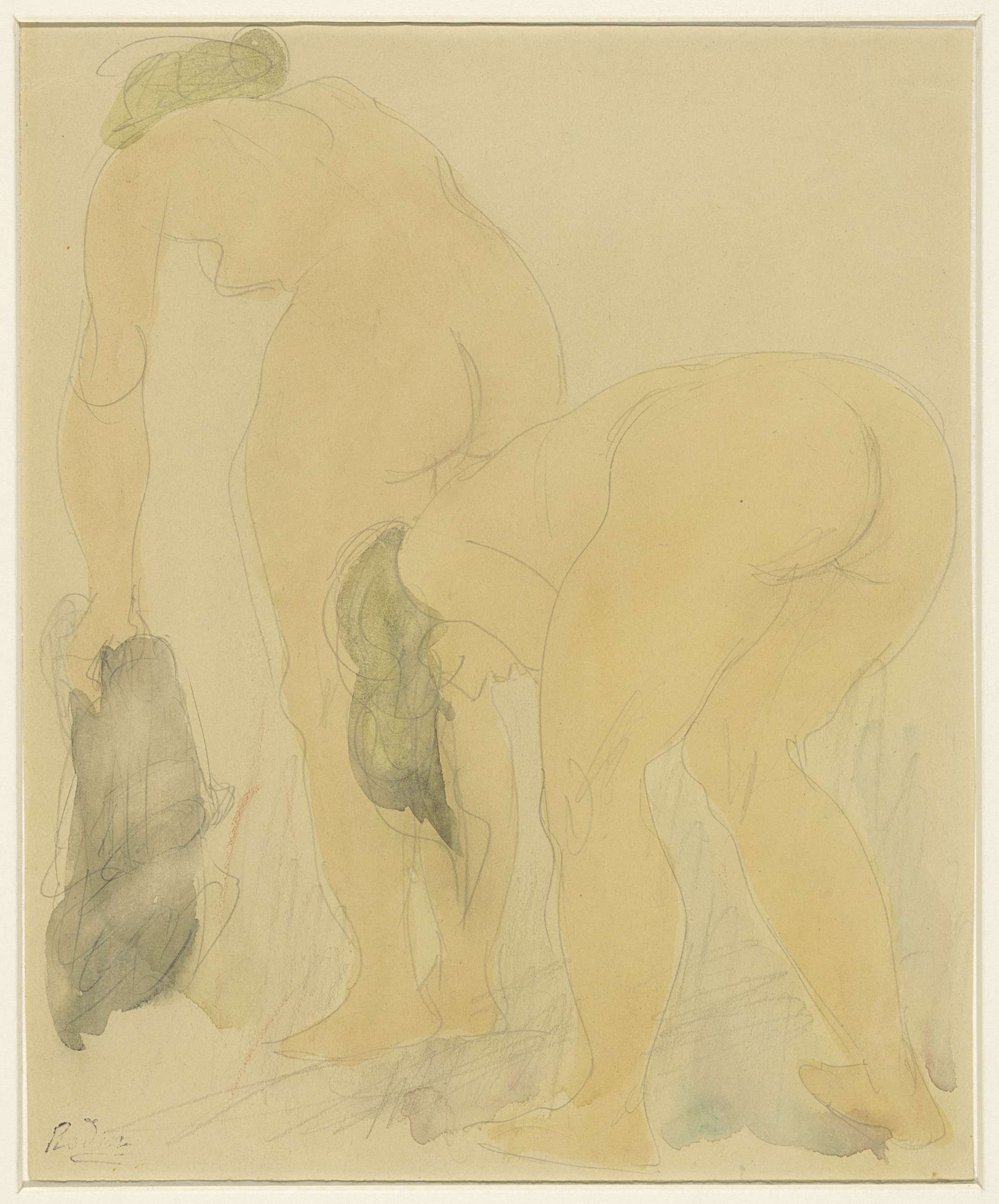 Studieblad met twee naakte vrouwen, op de rug gezien