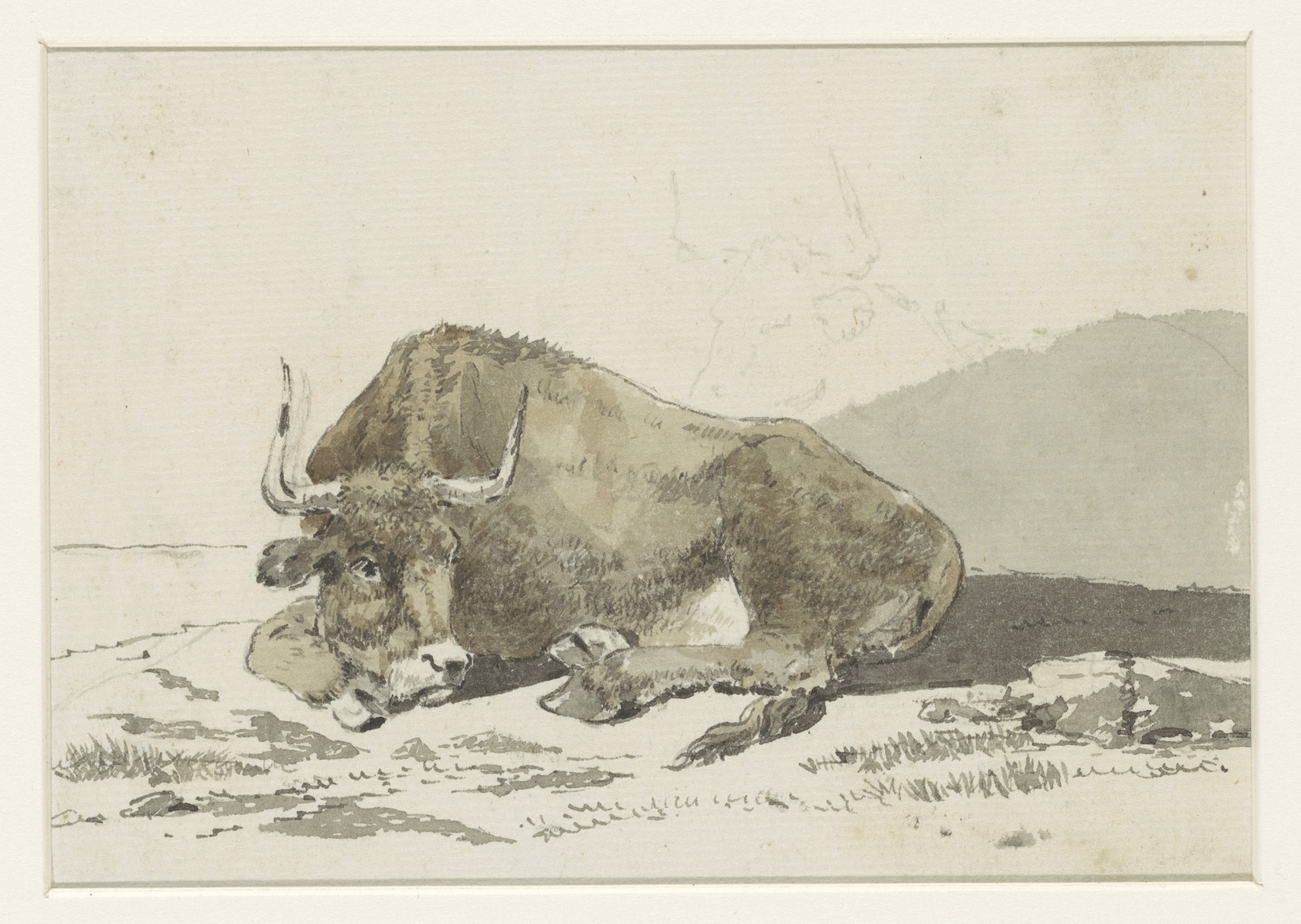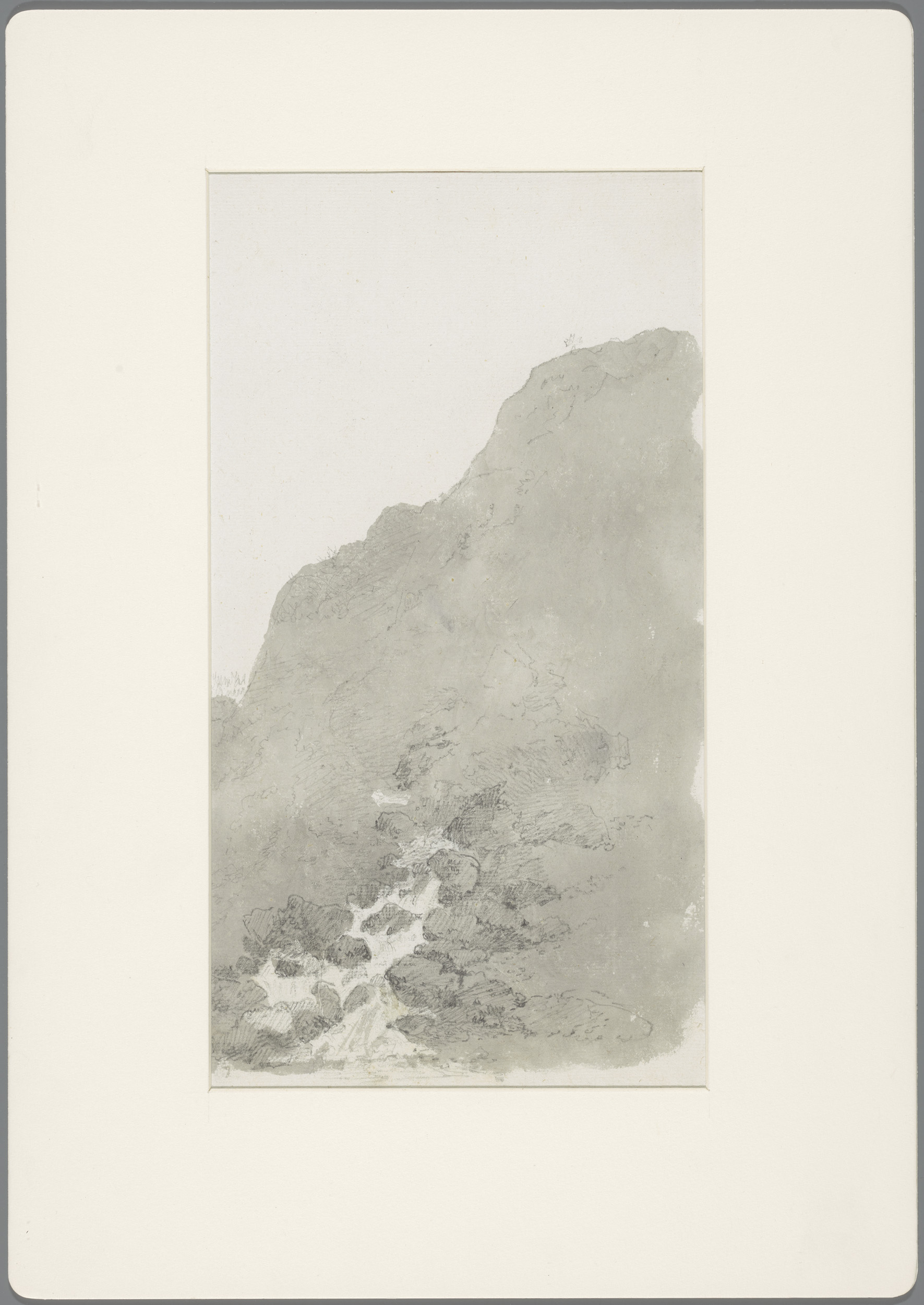 Bergbeek gezien tegen het egale grijs van een bergrug