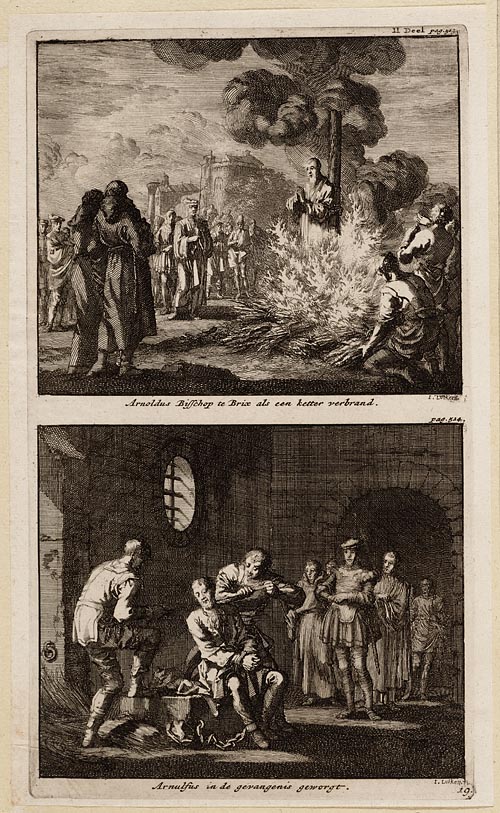 Arnoldus bisschop te Brix als een ketter verbrand, A...