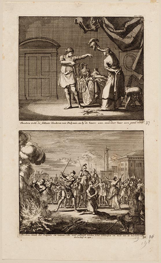 Theodora trekt de soldaats kleederen van Didymus, en...