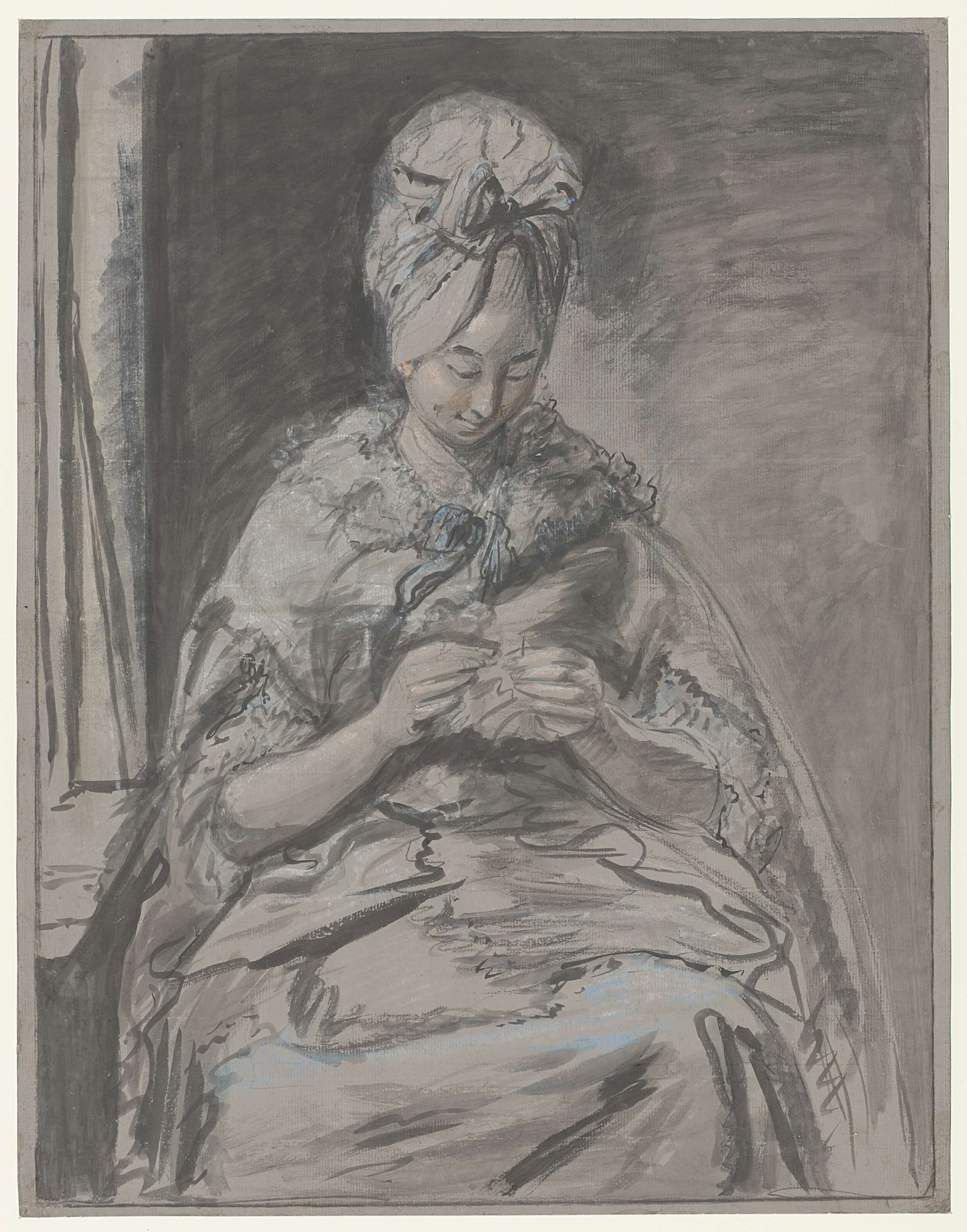 Studieblad met zittende vrouw en kinderen, te Derekö...