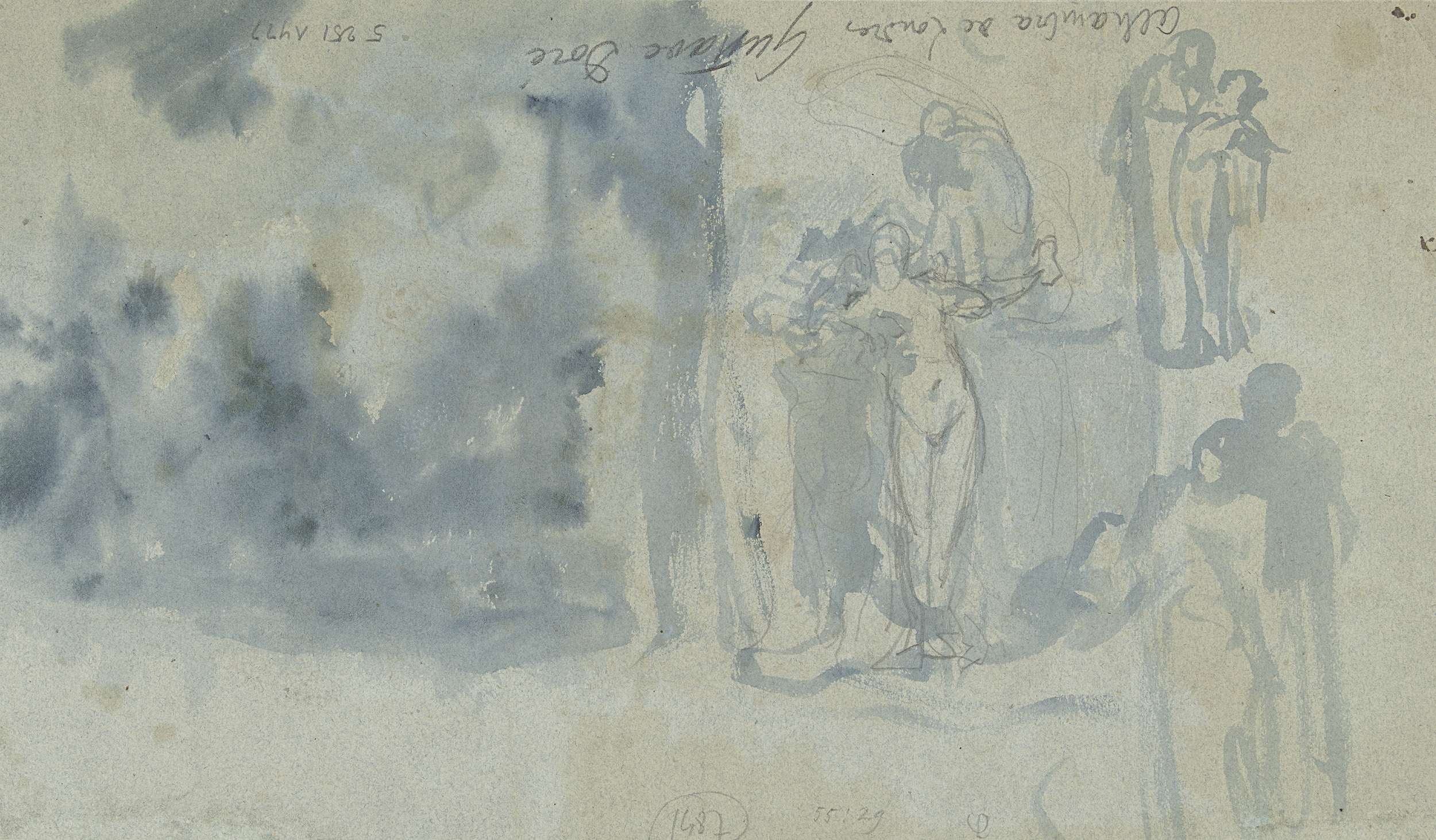 Schetsen van personen, waaronder een vrouwelijk naakt