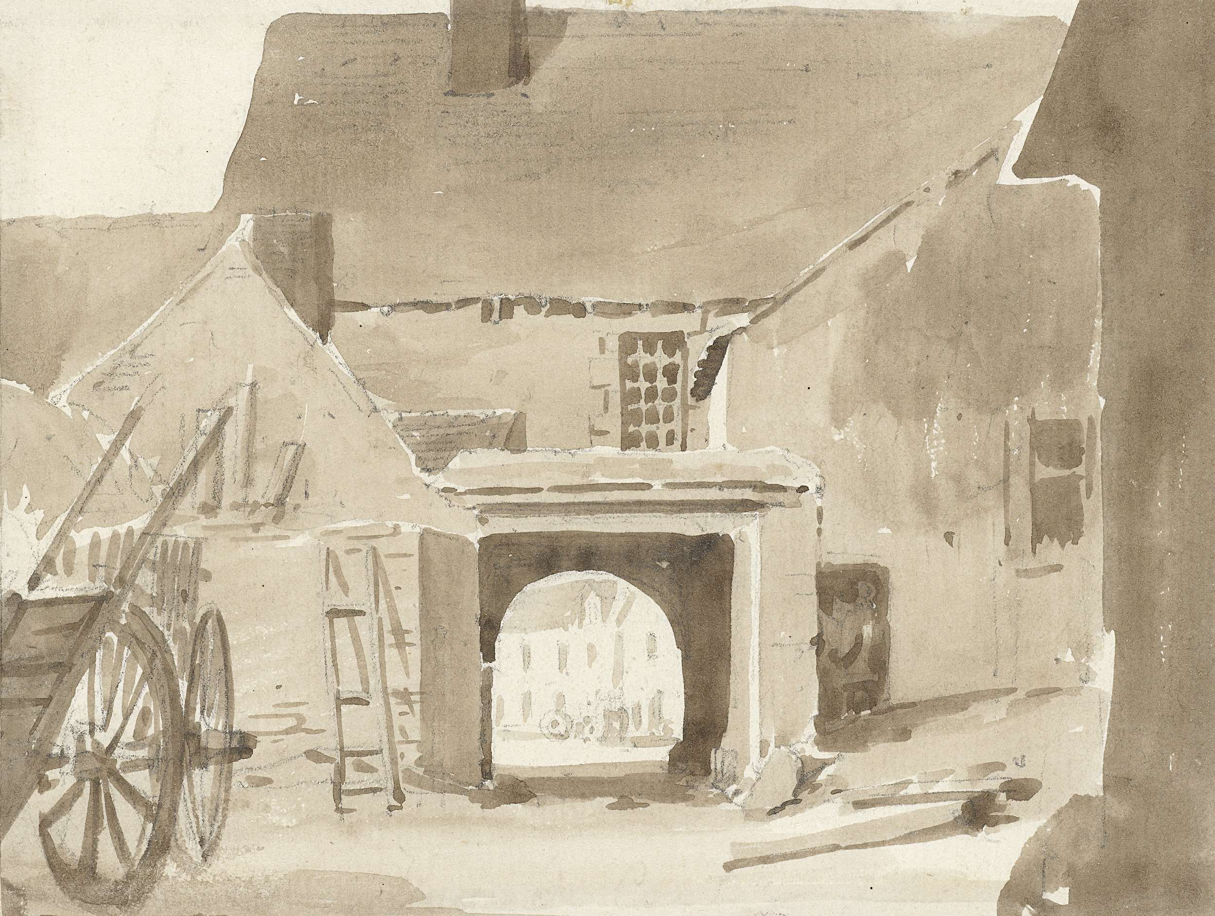 Inrit van een groot dorpshuis, van de binnenhof uit ...