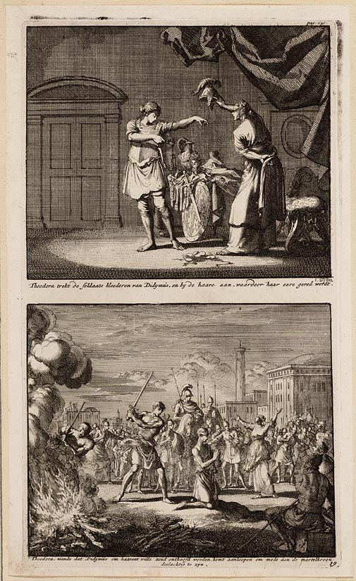 Theodora trekt de soldaats kleederen van Didymus, en...