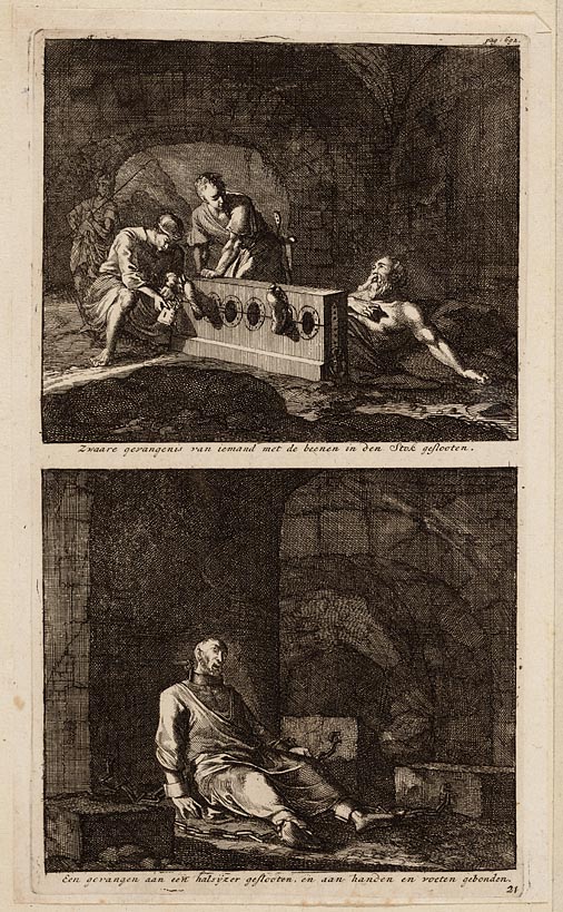 Zwaare gevangenis van iemand met de beenen in den st...