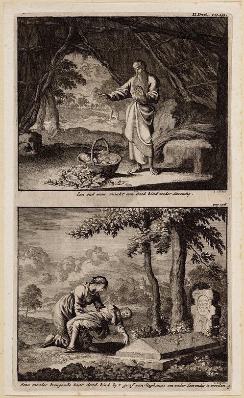 Een oud man maakt een dood kind weder leevendig, Een...