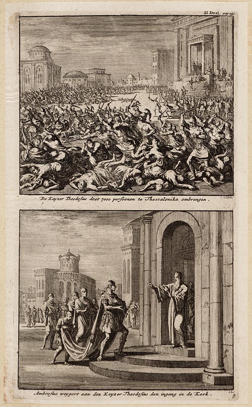 De keyzer Theodosius doet 7000 persoonen te Thessalo...