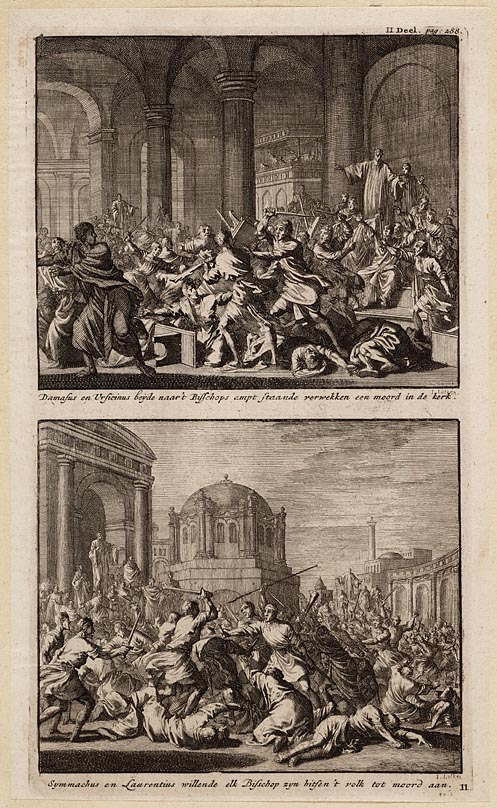 Damasus en Vrsicinus beyde naar ´t bisschops ampt st...