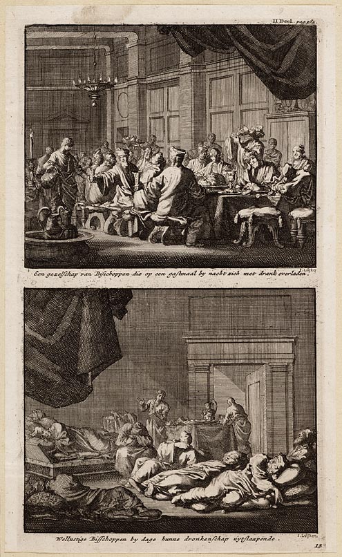 Een gezelschap van bisschoppen die op een gastmaal b...