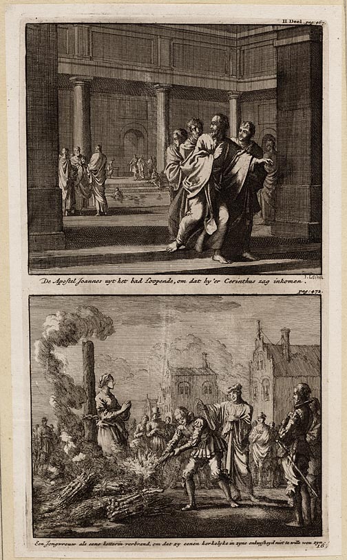 De apostel Joannes uyt het bad loopende, om dat hy´e...