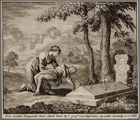 Eene moeder brengende haar dood kind by ´t graf van ...