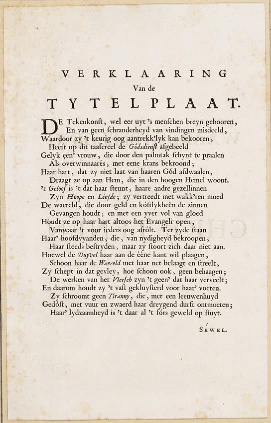 Verklaring van de titelprent van "Waare afbeelding d...