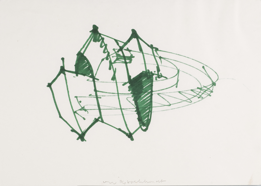 Twee tekeningen op papier met groene viltstift