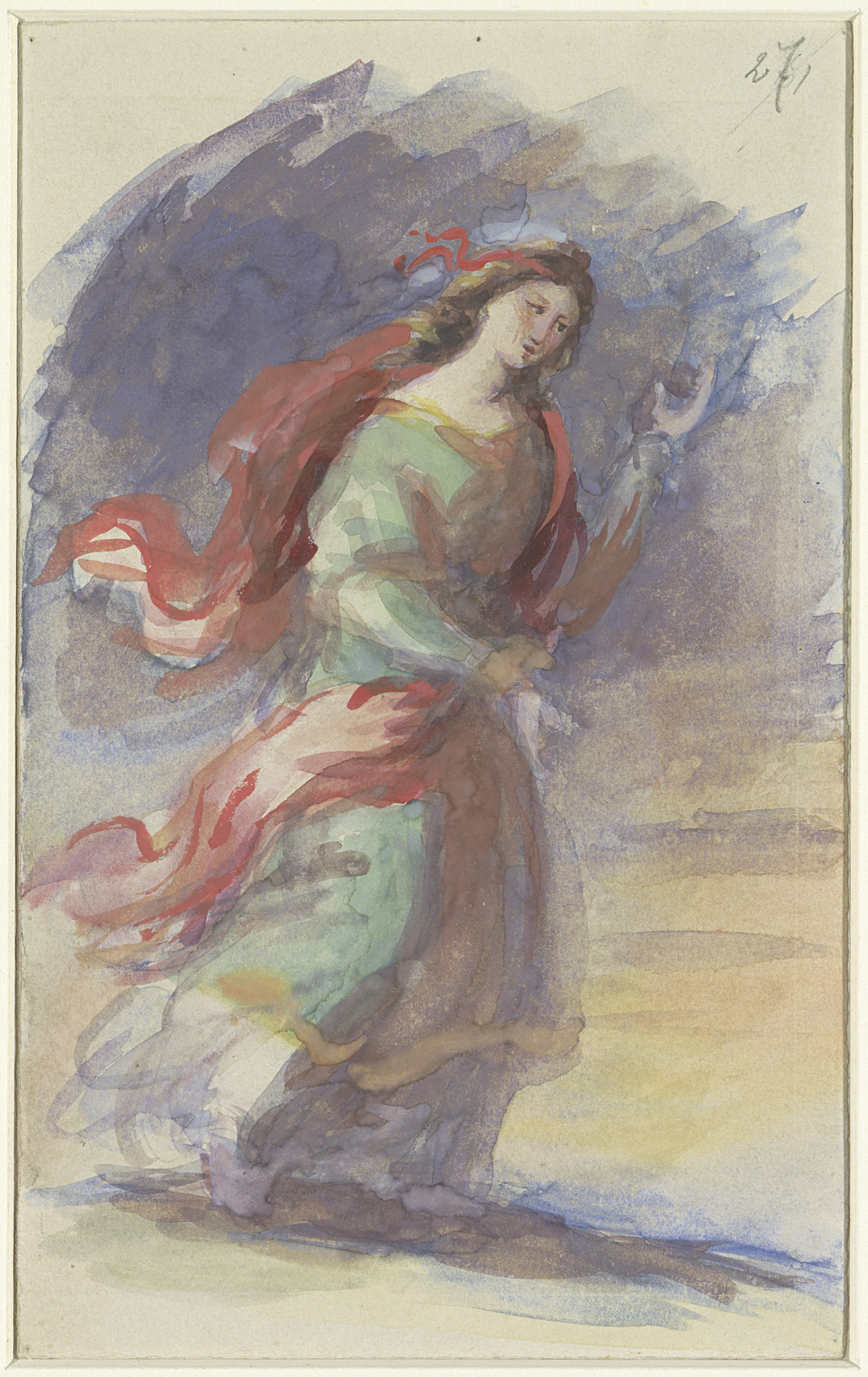 Lopende jonge vrouw, in kleurig, wapperend gewaad, t...
