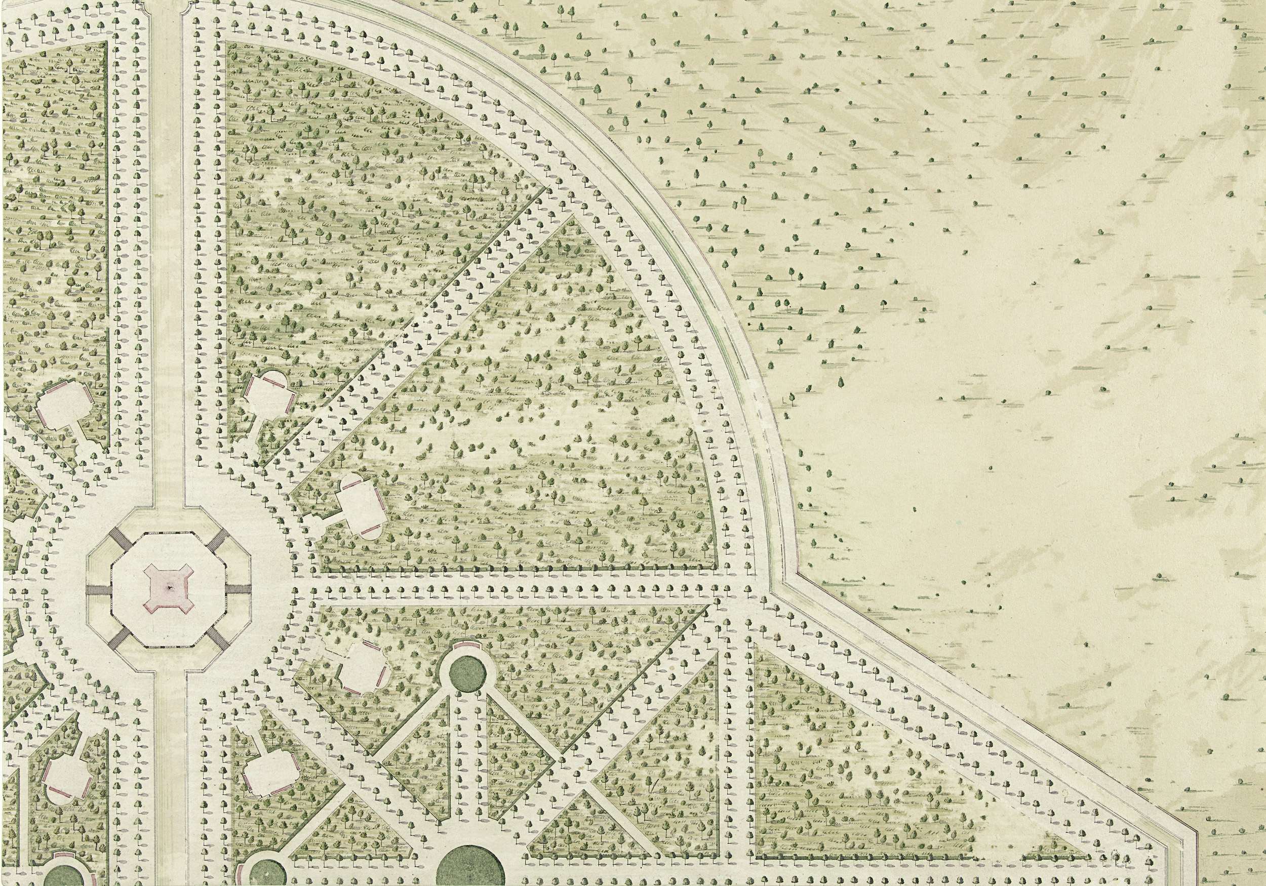 Gedeelte van een plattegrond met tuinaanleg