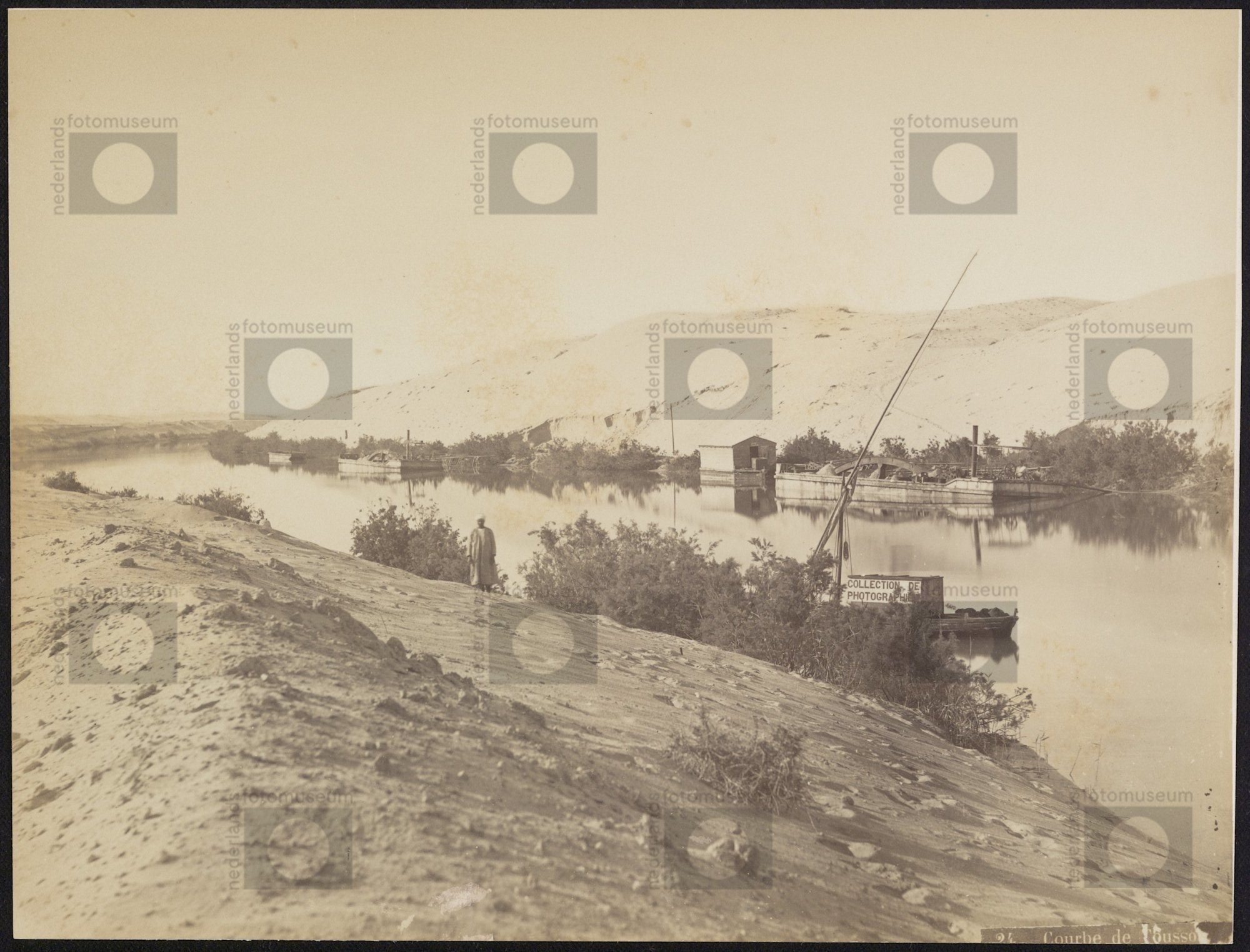 Het Suez-kanaal met een drijvende fotostudio, Egypte...