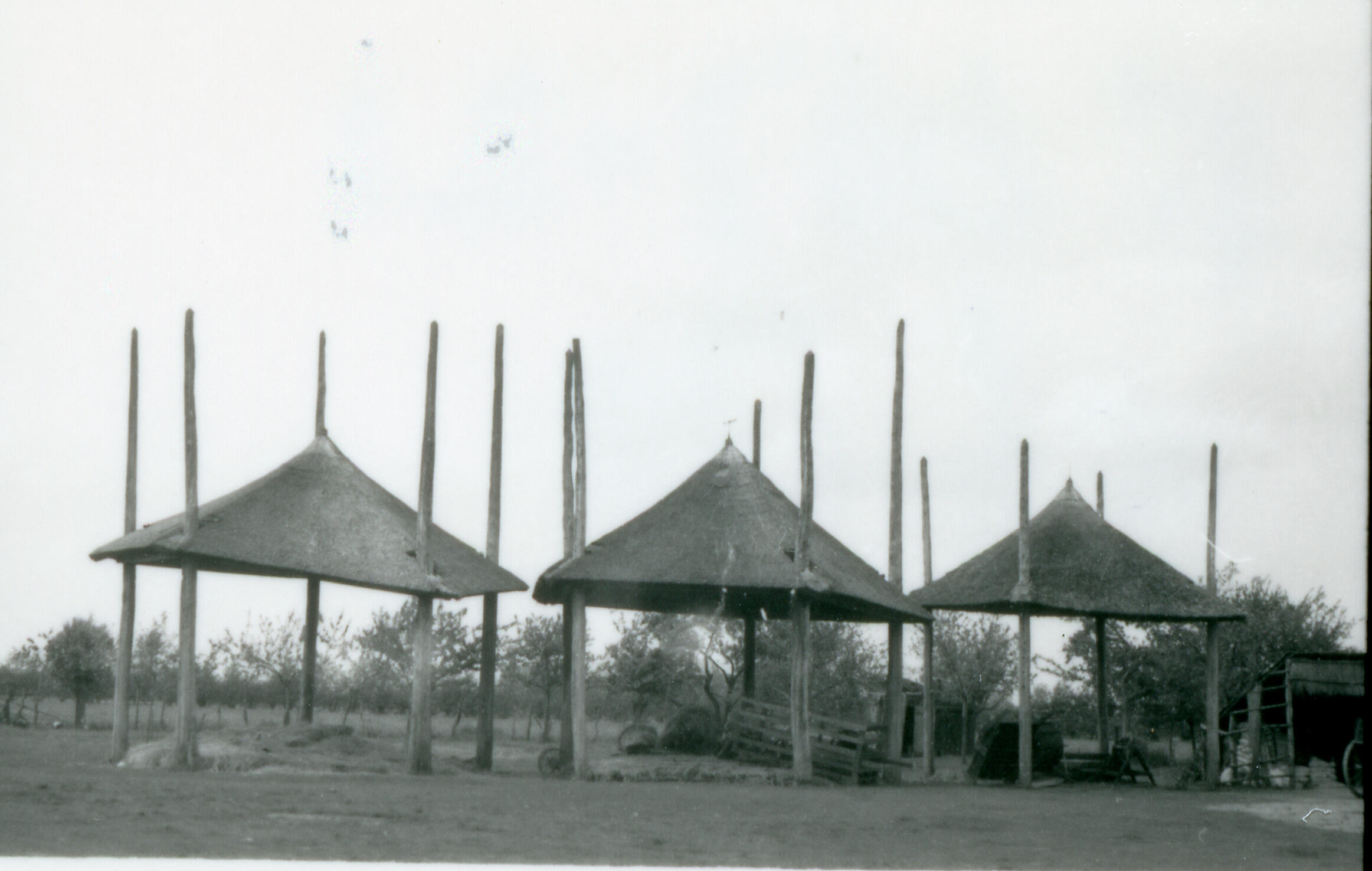 Drie hooibergen, Hoogland, 1942 (zwart-wit foto)