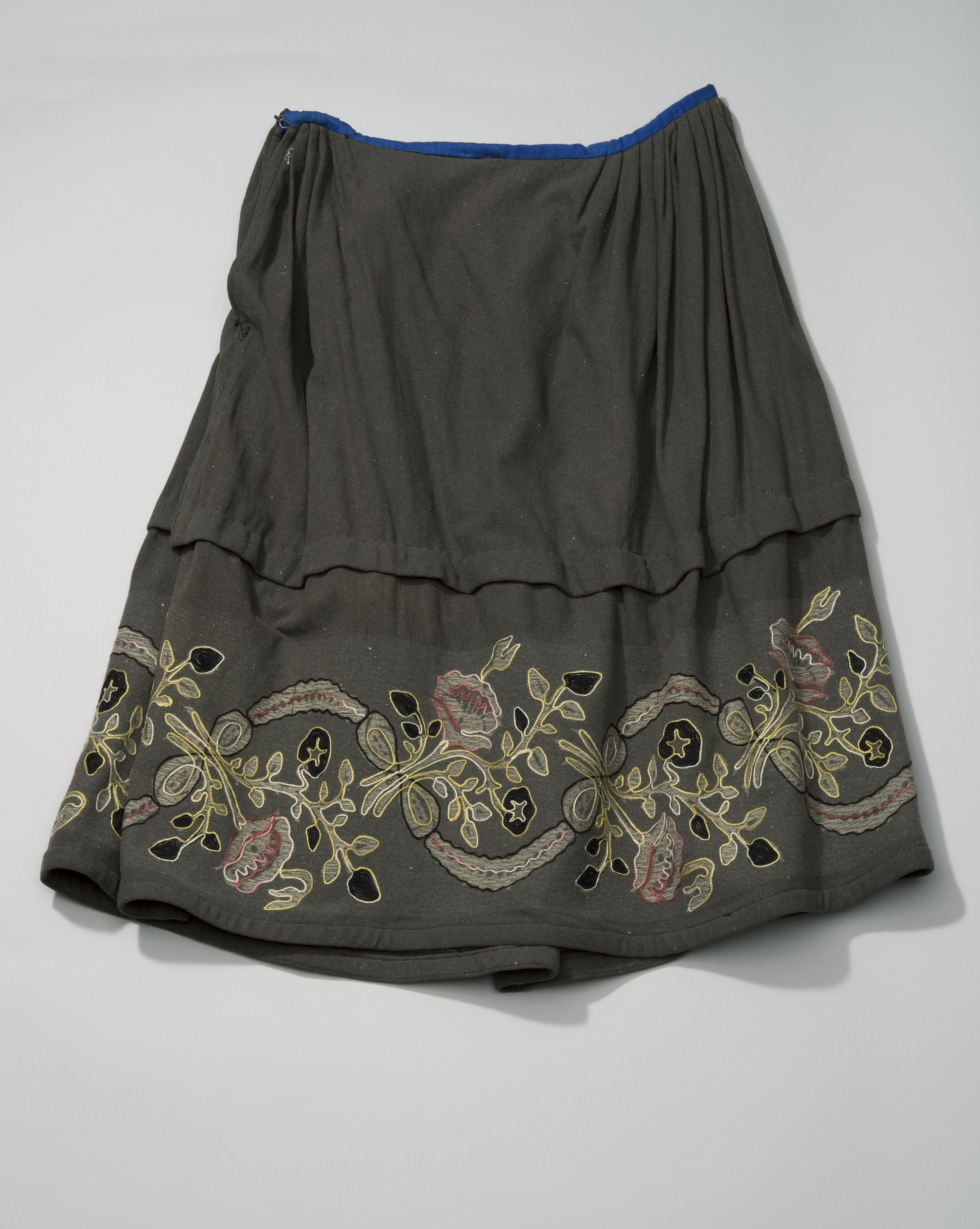 Zwart satijnen meisjesjak met motieven, Axel, voor 1960