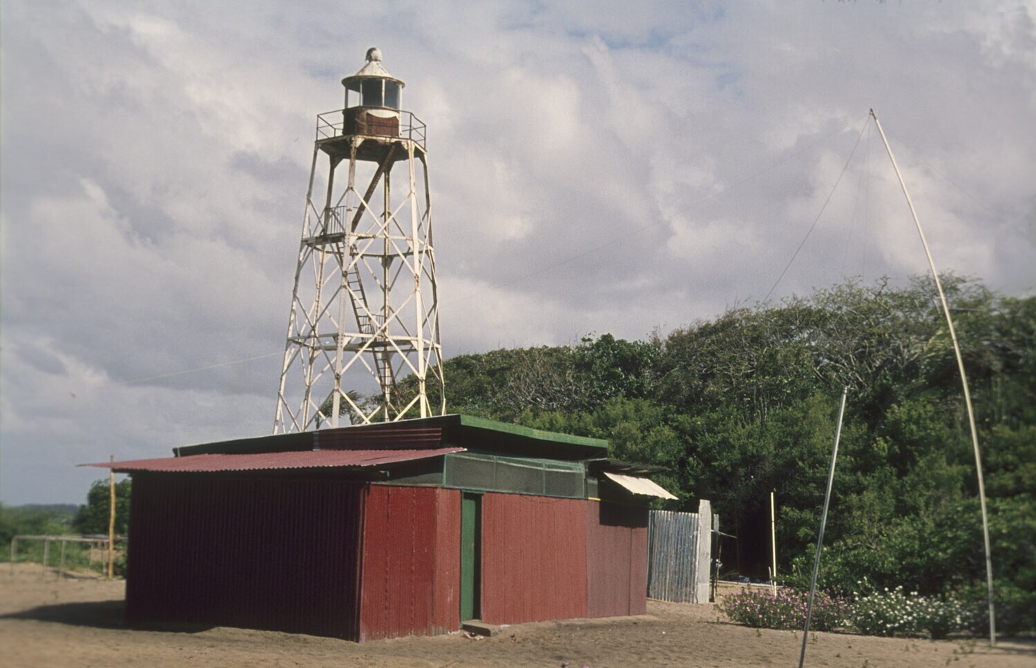 De vuurtoren op het strand van Galibi; het roodzink...