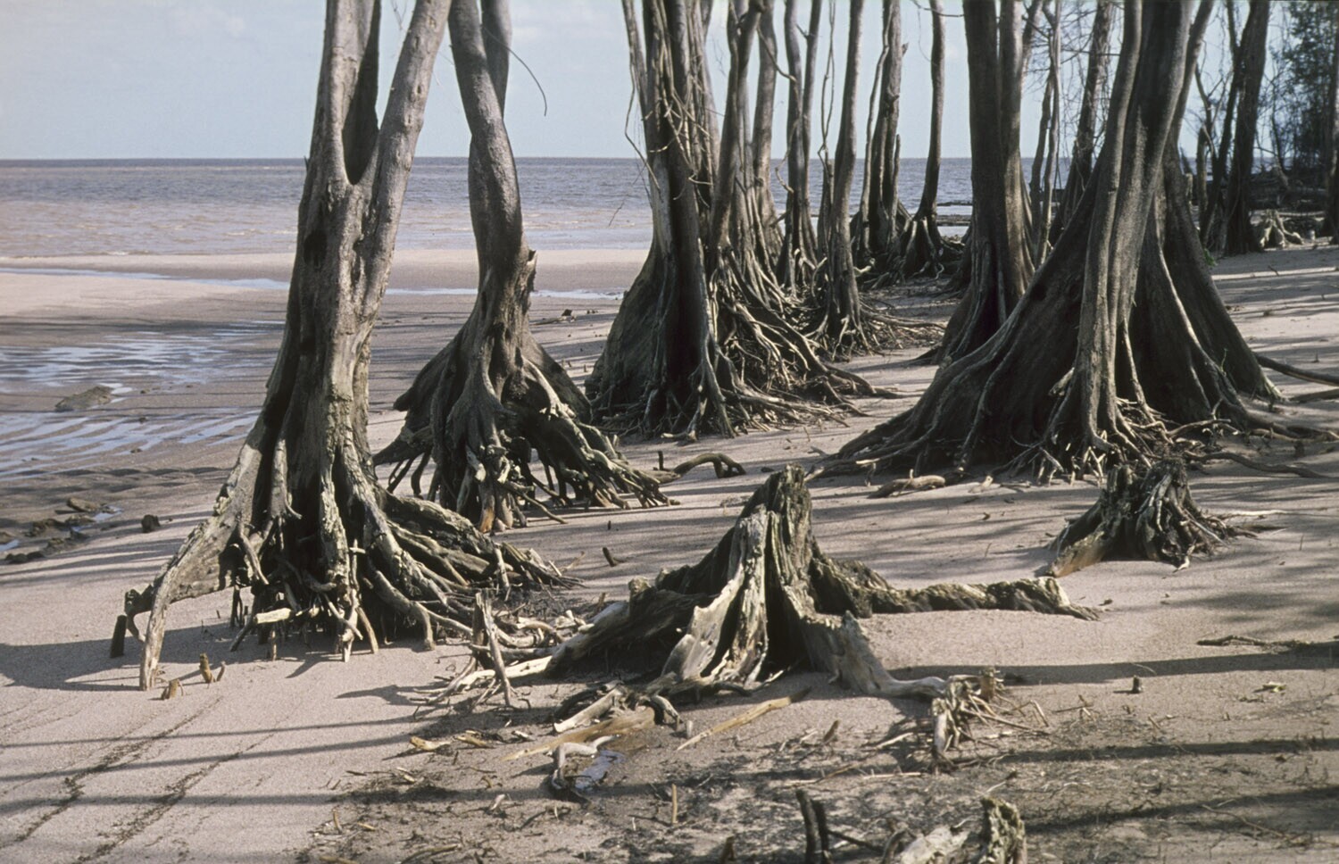 Strandafslag bij het natuurreservaat Galibi; het zan...
