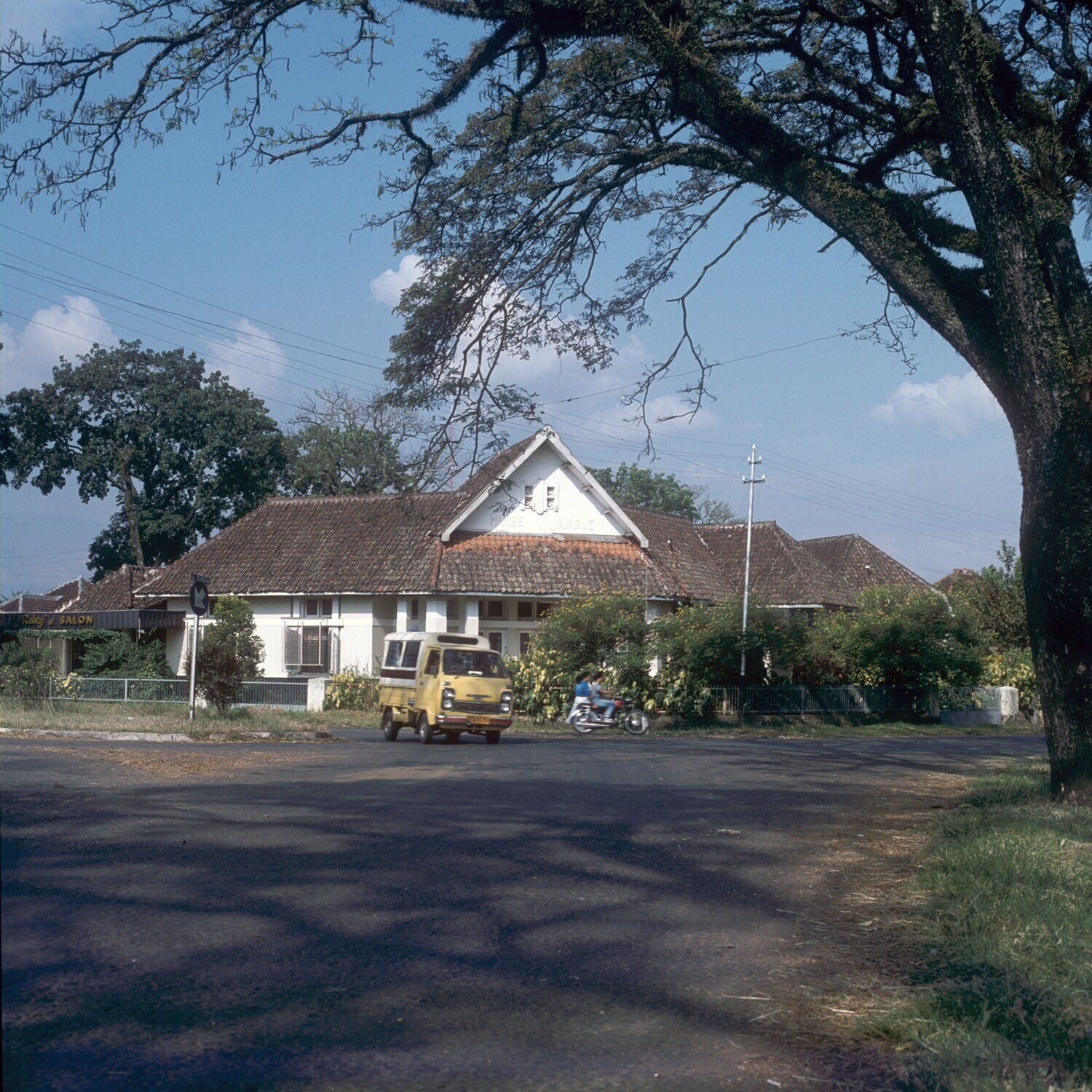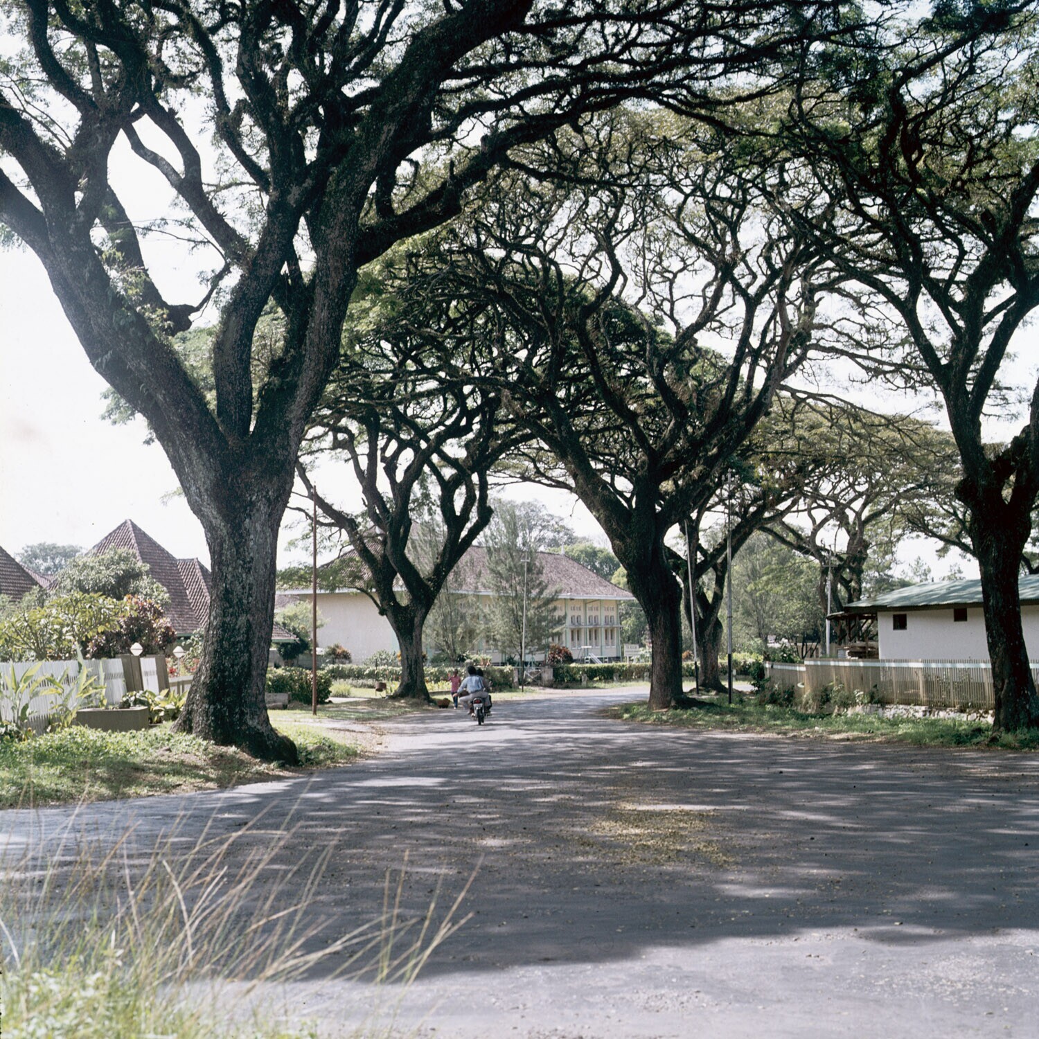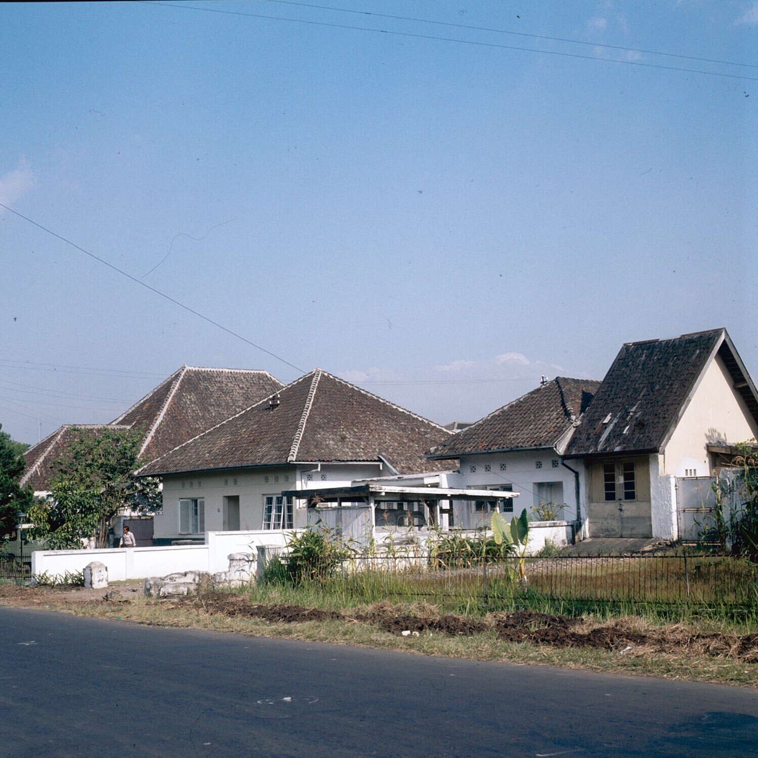 Straatbeeld, Tjihapit, Bandung. Europese woningen va...