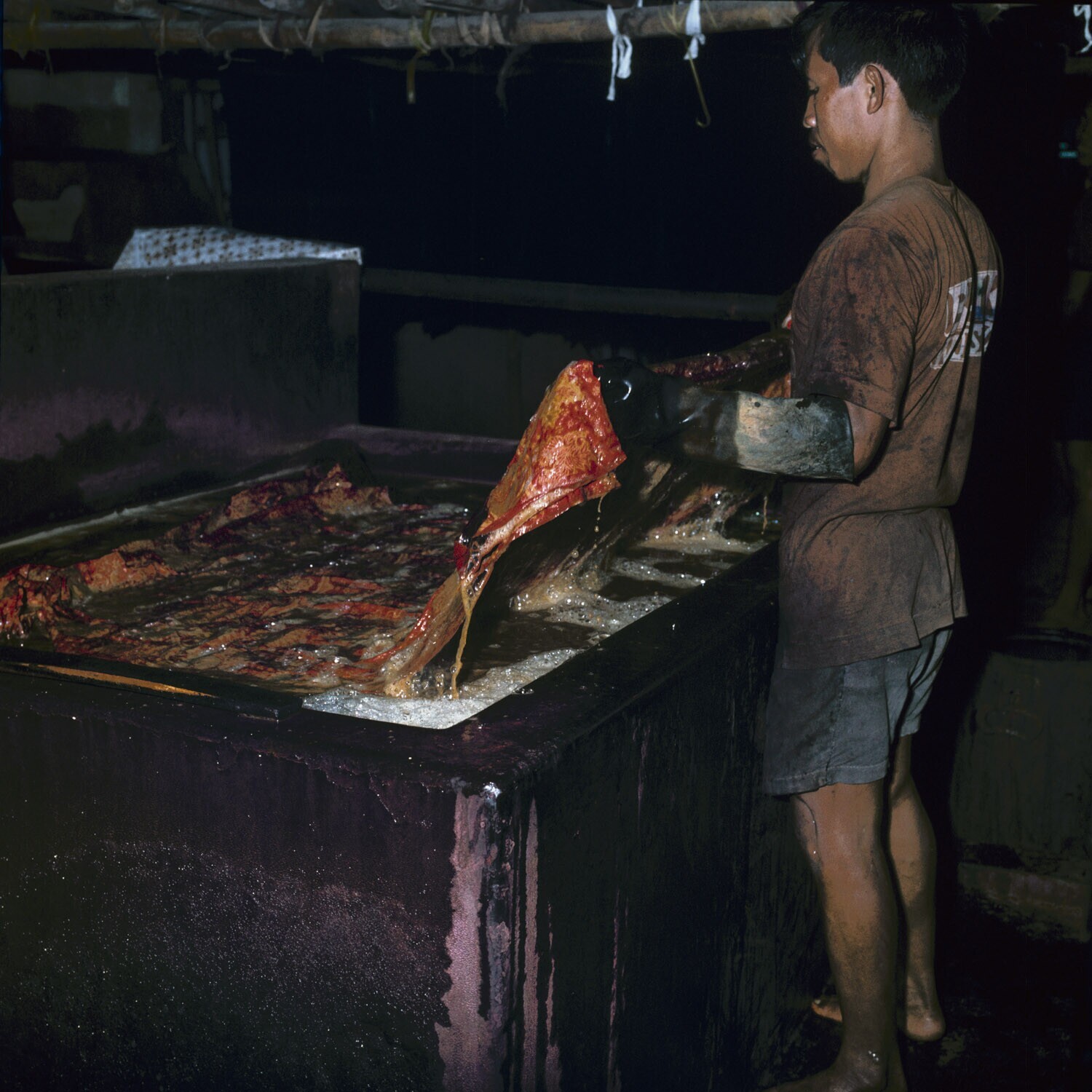 Batikatelier, Jogja. Het verwijderen van de was na e...
